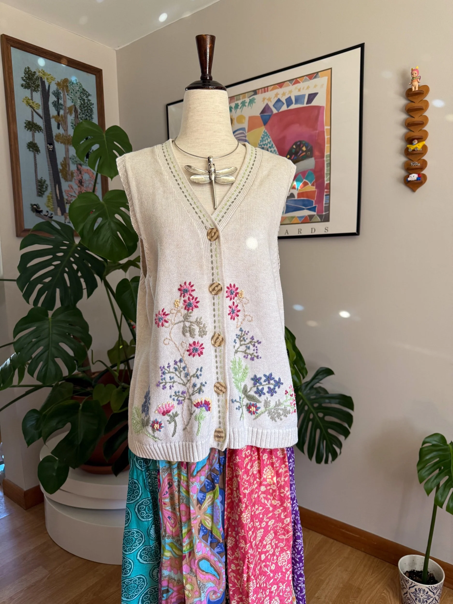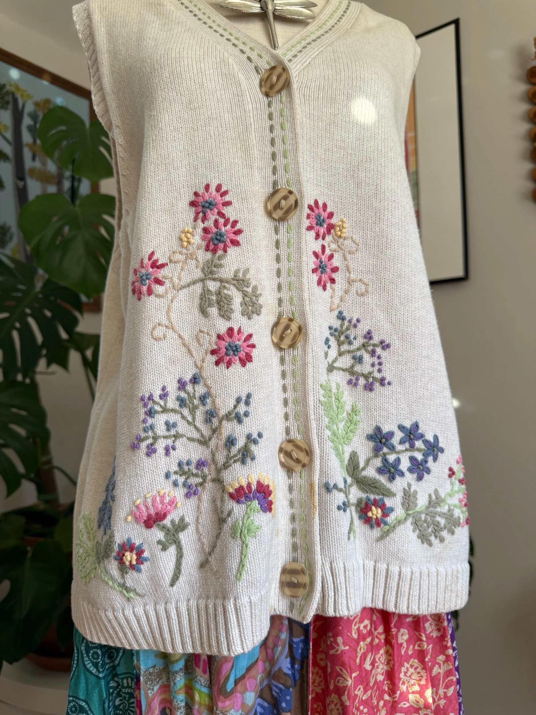 adorable embroidery vest with the sweetest colorful flowers :)