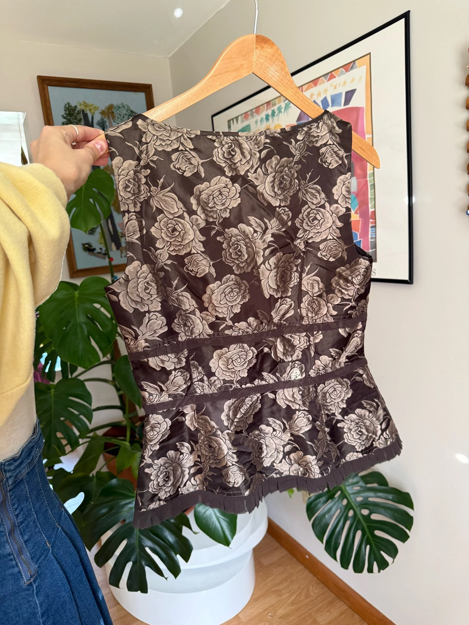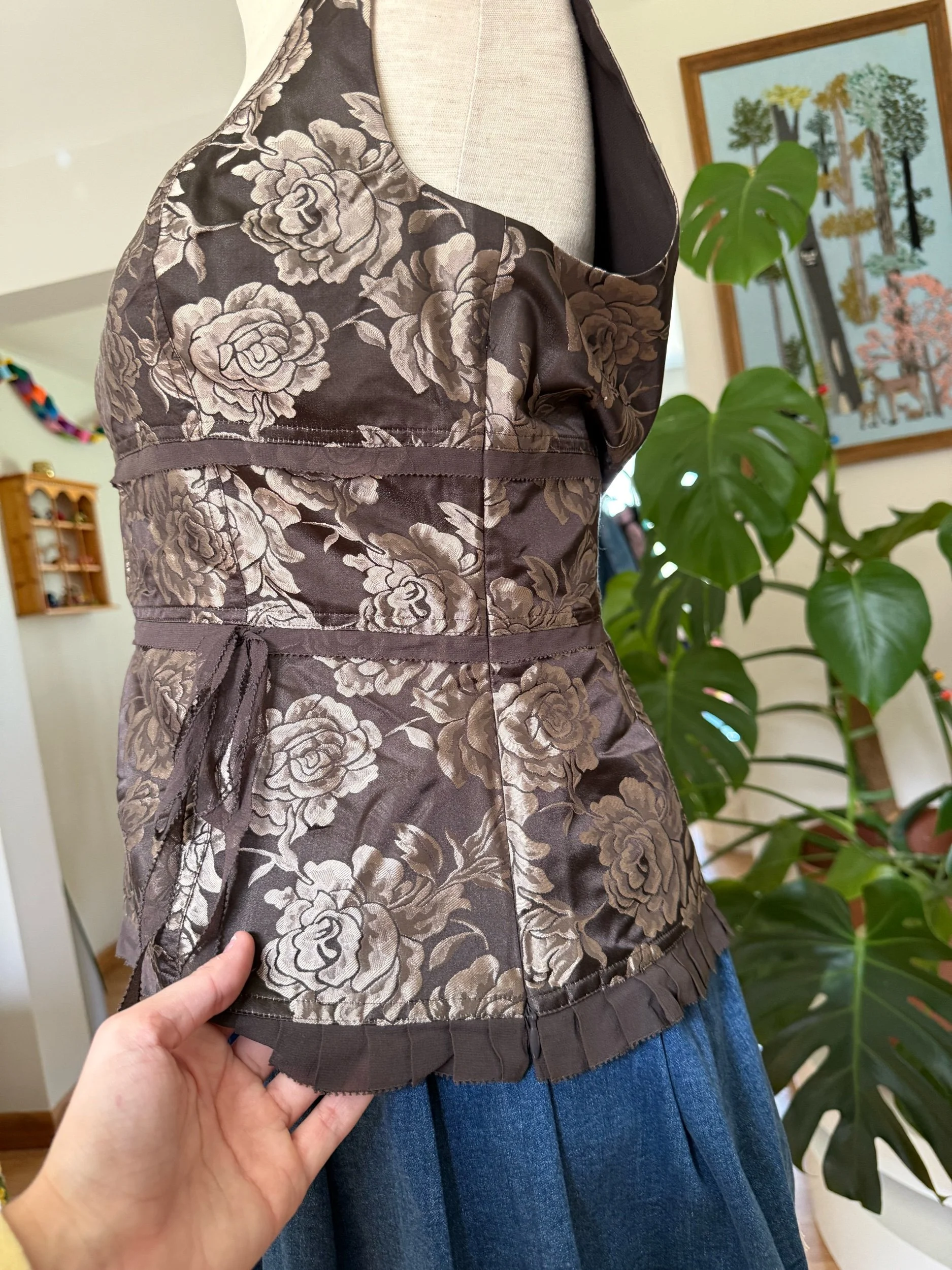 beautiful new with tags, earthy toned blouse with floral pattern, bow-tie detailing, and side zipper :)