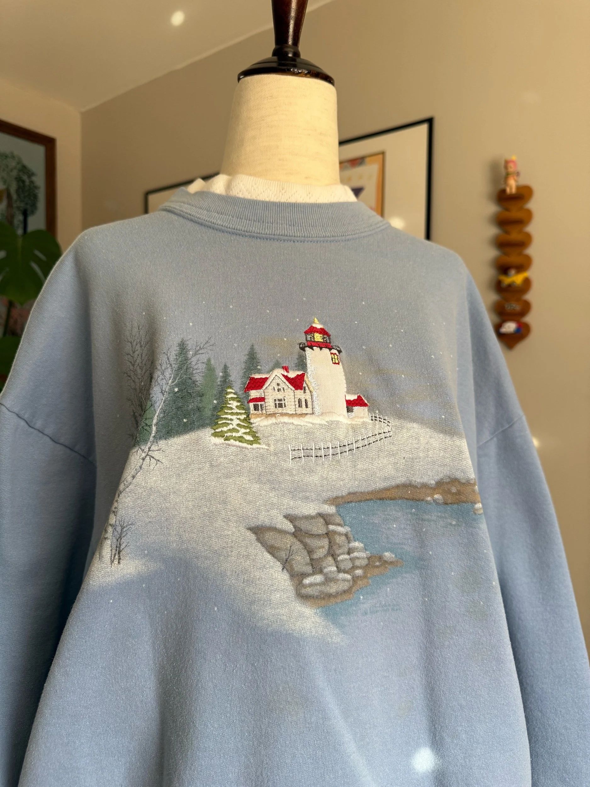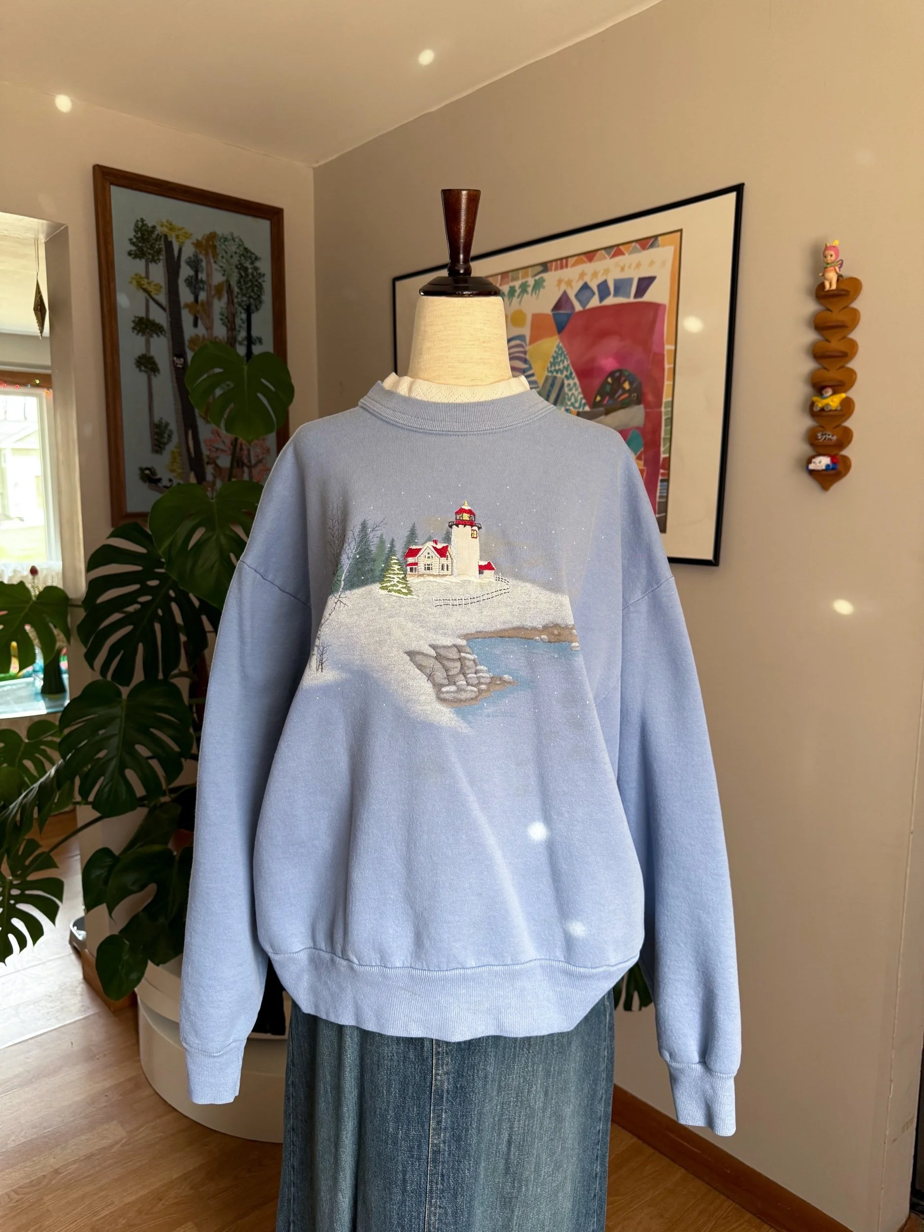 you know I love a double collar! This lighthouse crewneck is one of my favorite vintage brands, “Top Stitch”