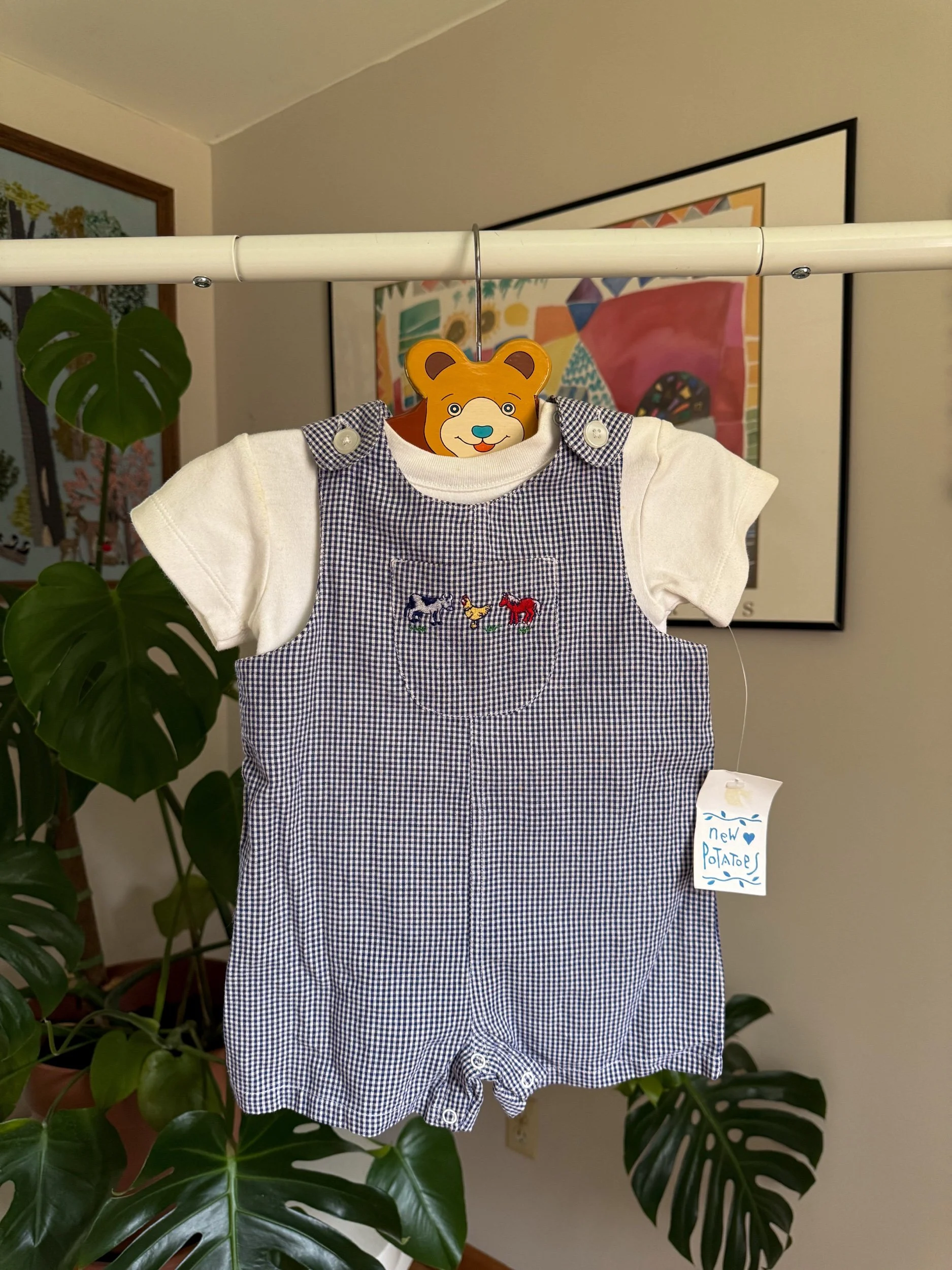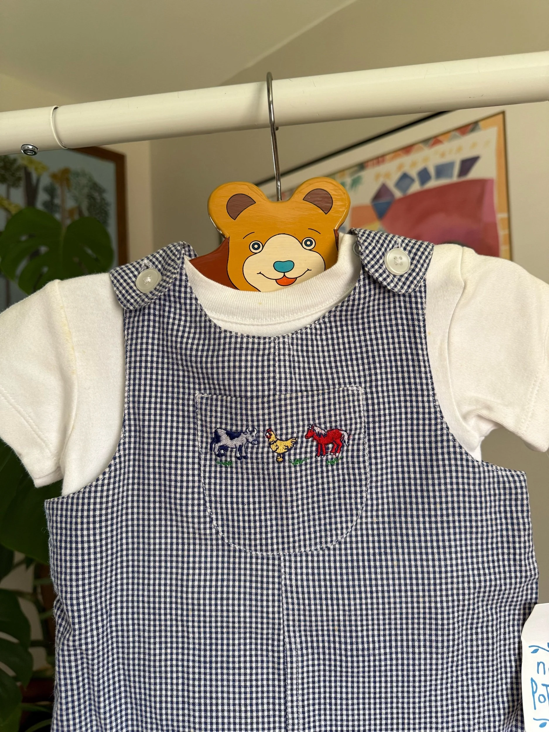 adorable gingham set with farm animal embroidery :) Vintage new with tags!