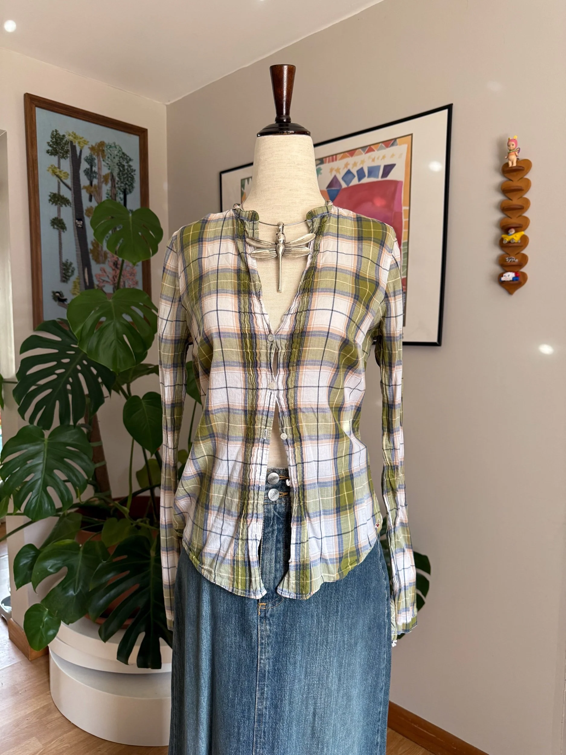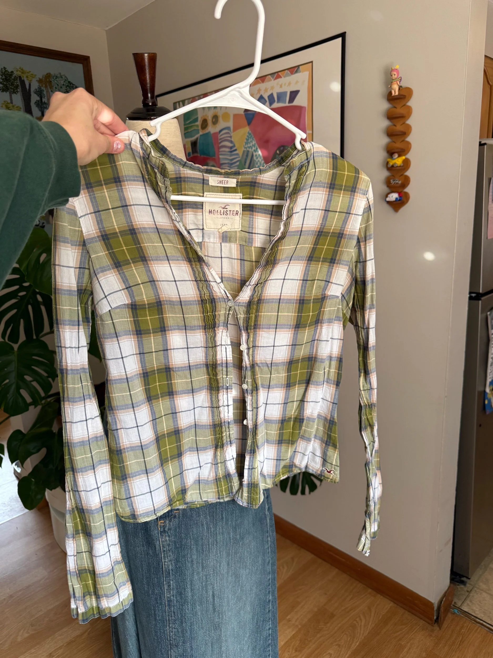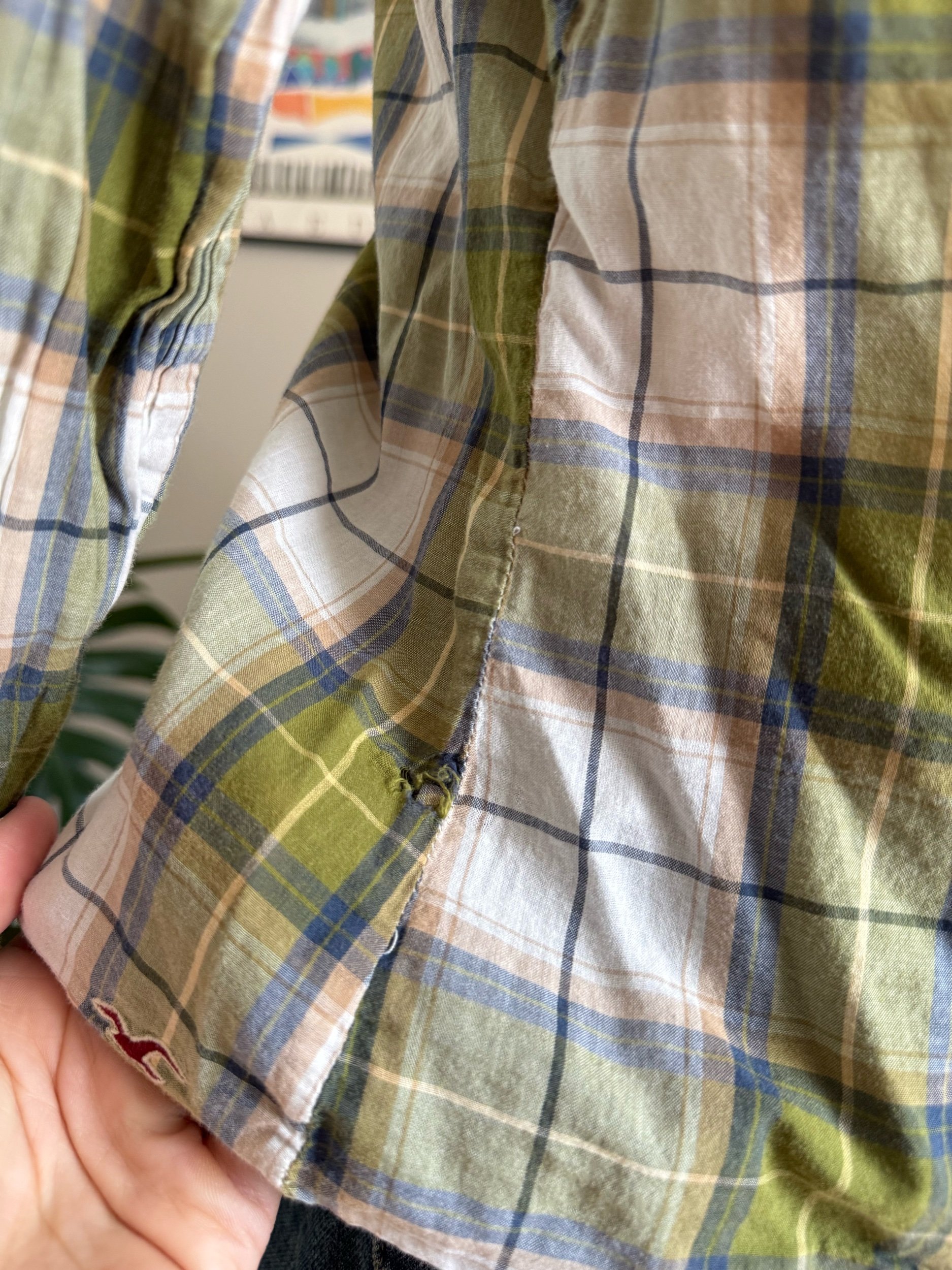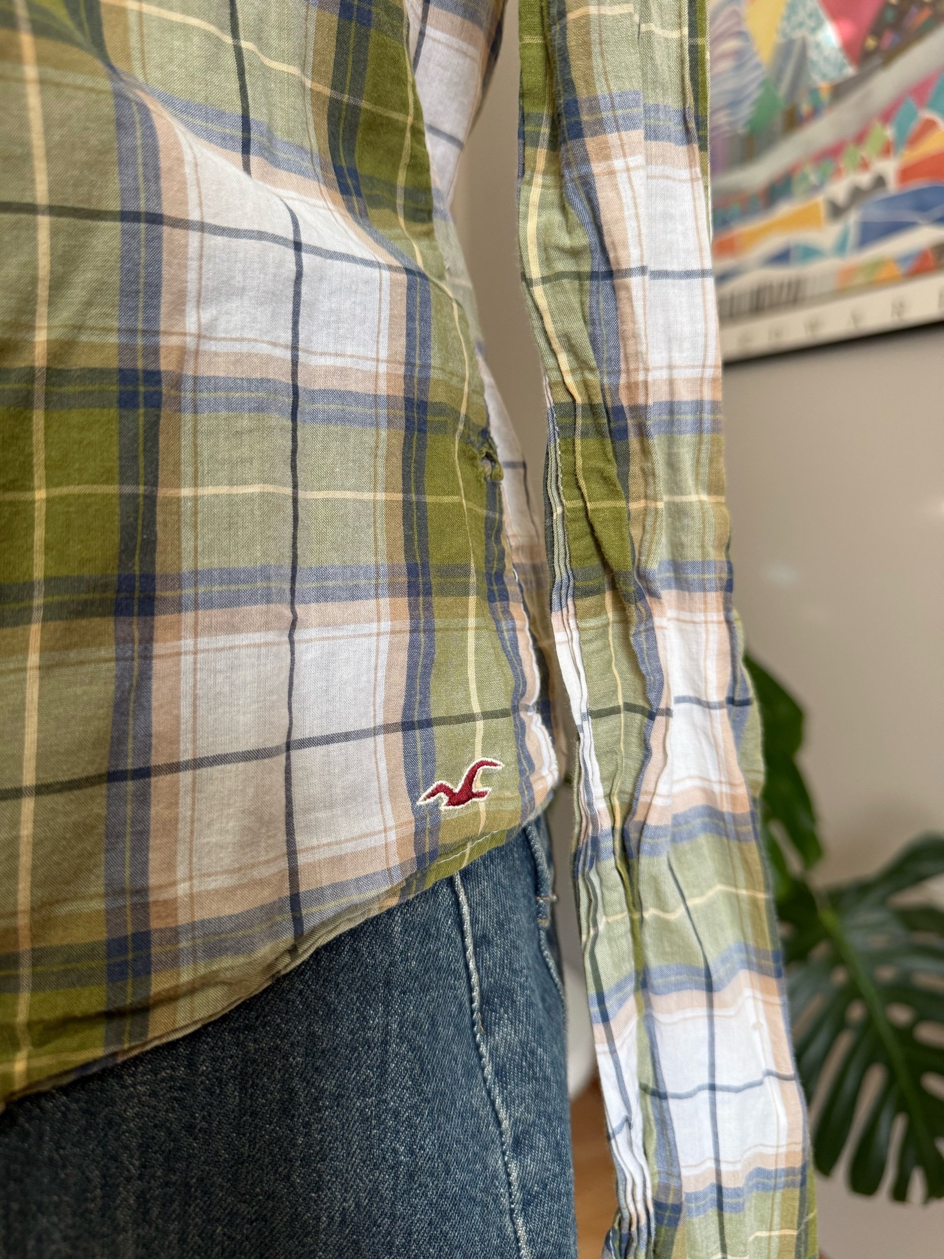 iconic sheer early 2000s Hollister flannel / please note there are some minor holes shown, and one of the buttons on the wrist of the sleeve is missing