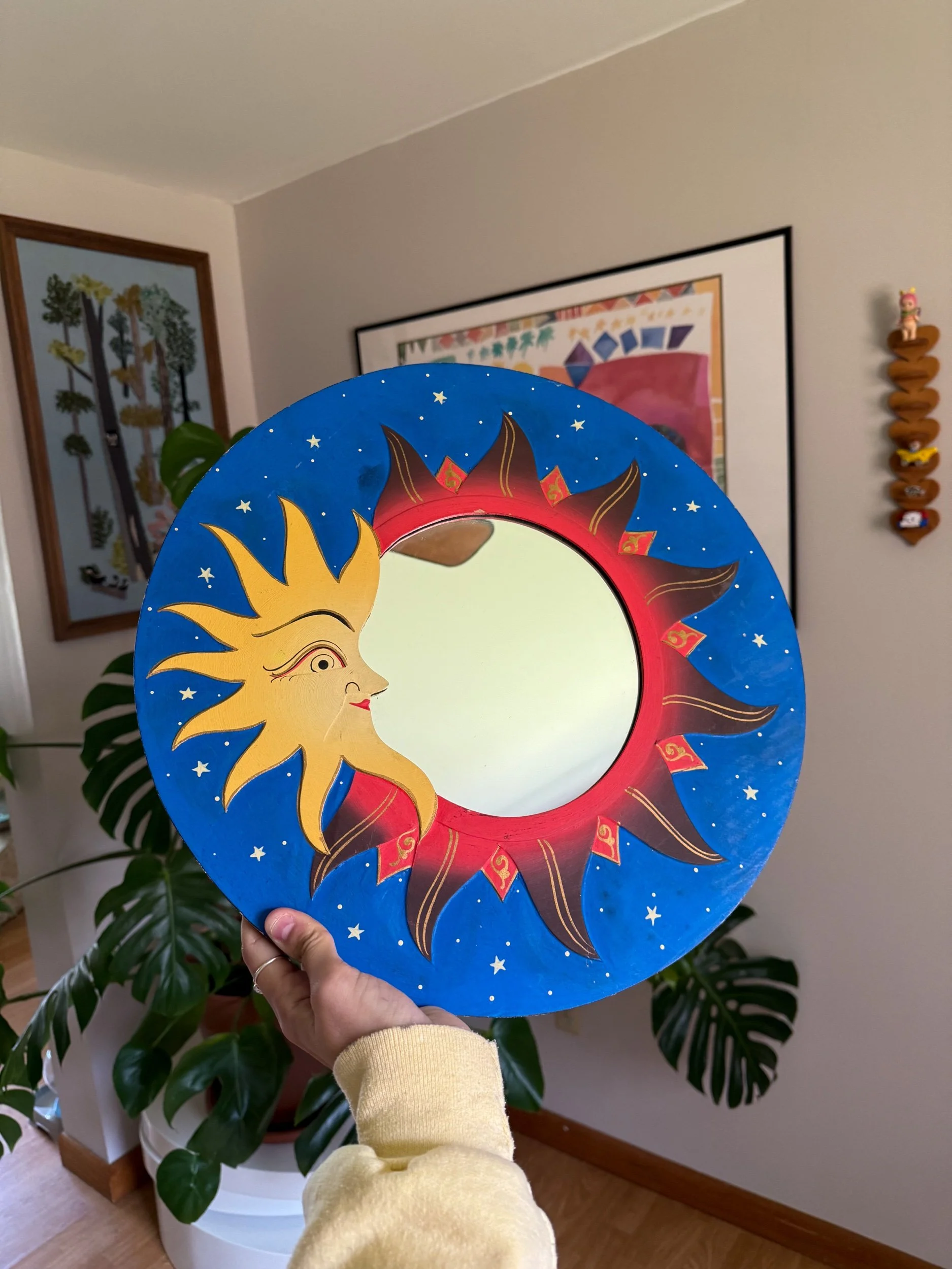 beautiful vintage wooden mirror, with vibrant colors :)