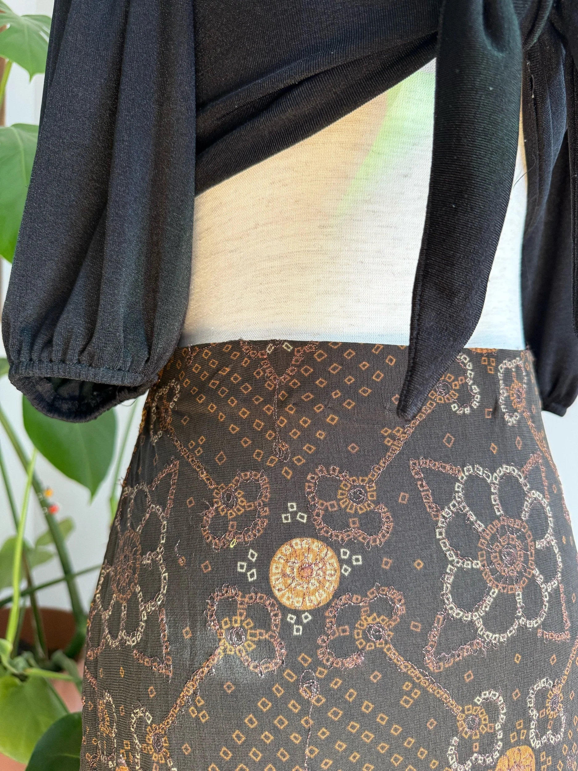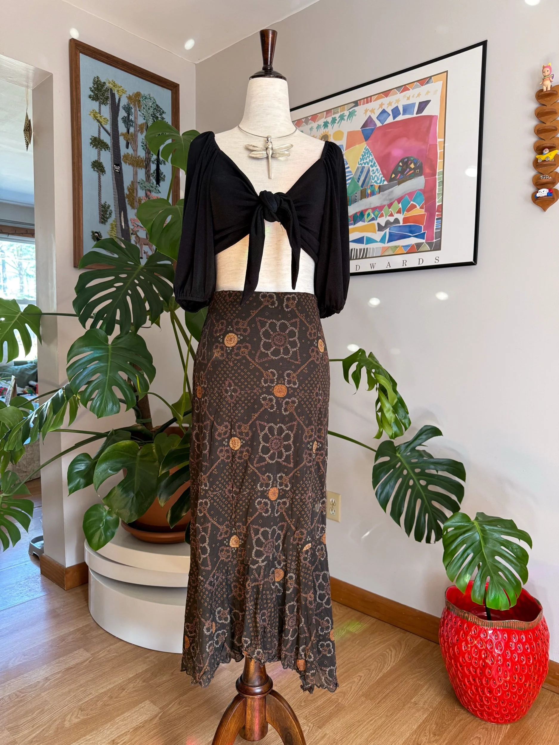 stunning sparkling brown earthy skirt with ruffle detailing hem at the bottom