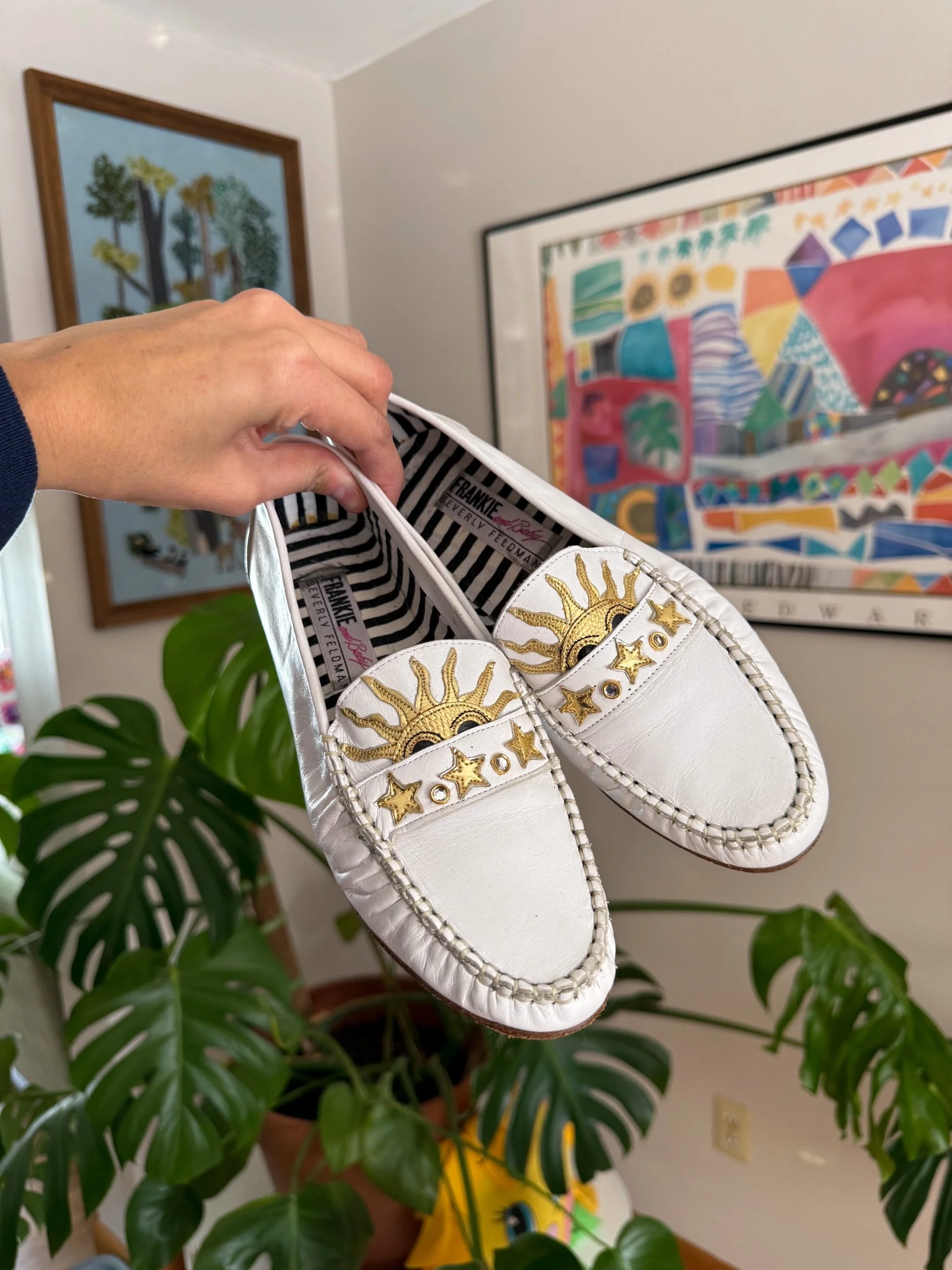 Shop › RARE Vtg Celestial Flats Image 1 of 4 Image 2 of 4 Image 3 of 4 Image 4 of 4 RARE Vtg Celestial Flats $40.00 sold out size 6.5the most beautiful shoes I’ve ever seen!!! Sold Out Added! size 6.5the most beautiful shoes I’ve ever seen!!!