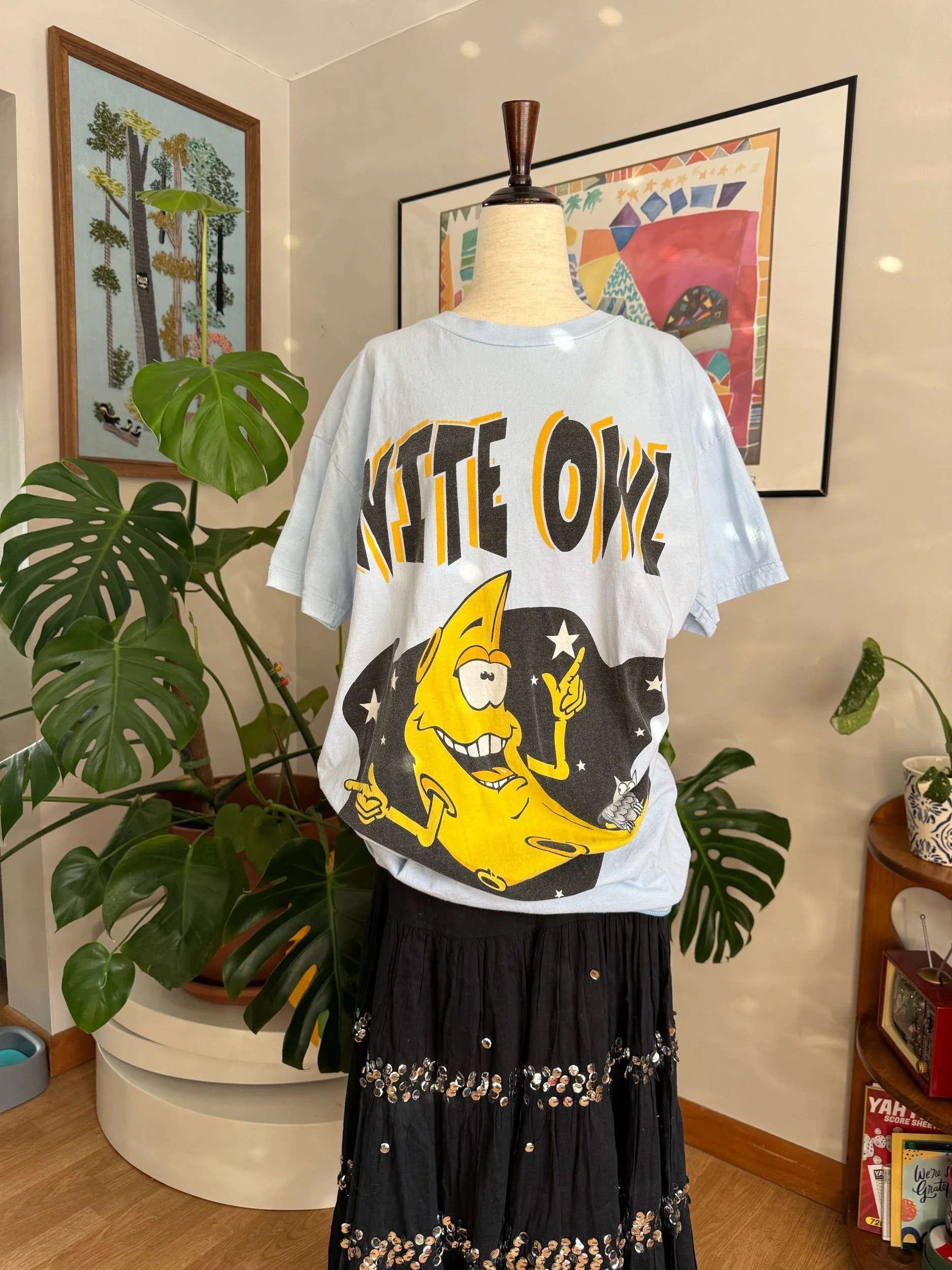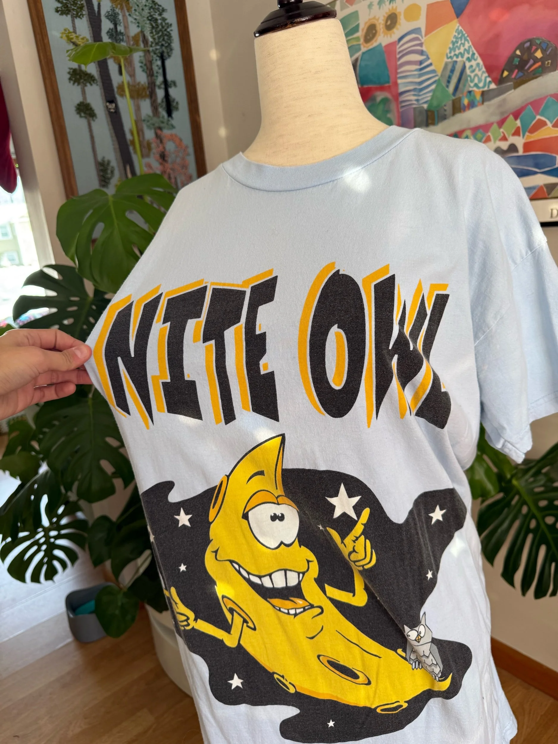 Shop › Vtg “Night Owl” Moon Graphic Tee Image 1 of 3 Image 2 of 3 Image 3 of 3 Vtg “Night Owl” Moon Graphic Tee $35.00 sold out size XL fitpit to pit 21.5”length 32”100% cottonvintage graphic tee/night shirt / so fun & quirky :) Sold Out Added! size XL fitpit to pit 21.5”length 32”100% cottonvintage graphic tee/night shirt / so fun & quirky :)
