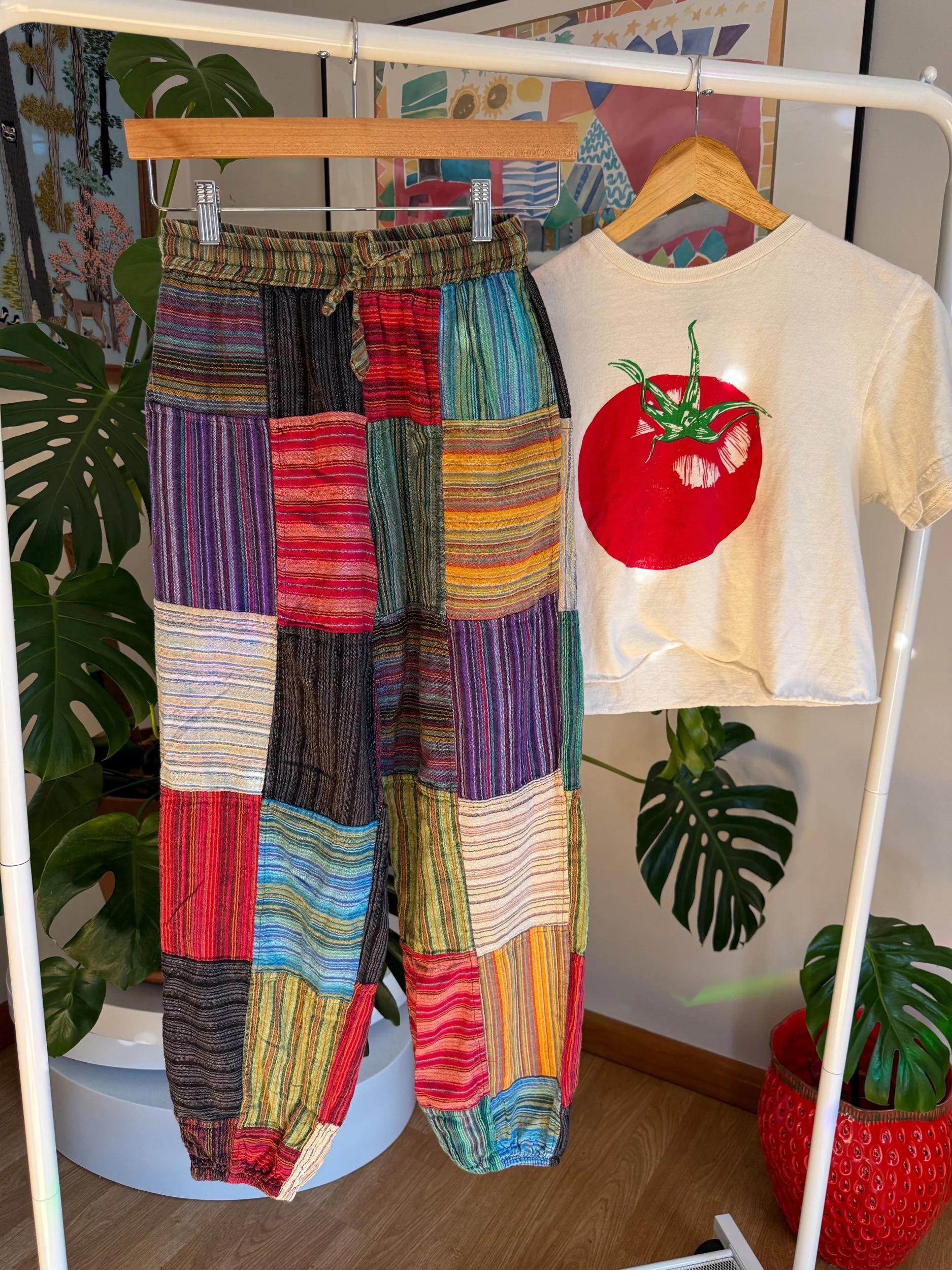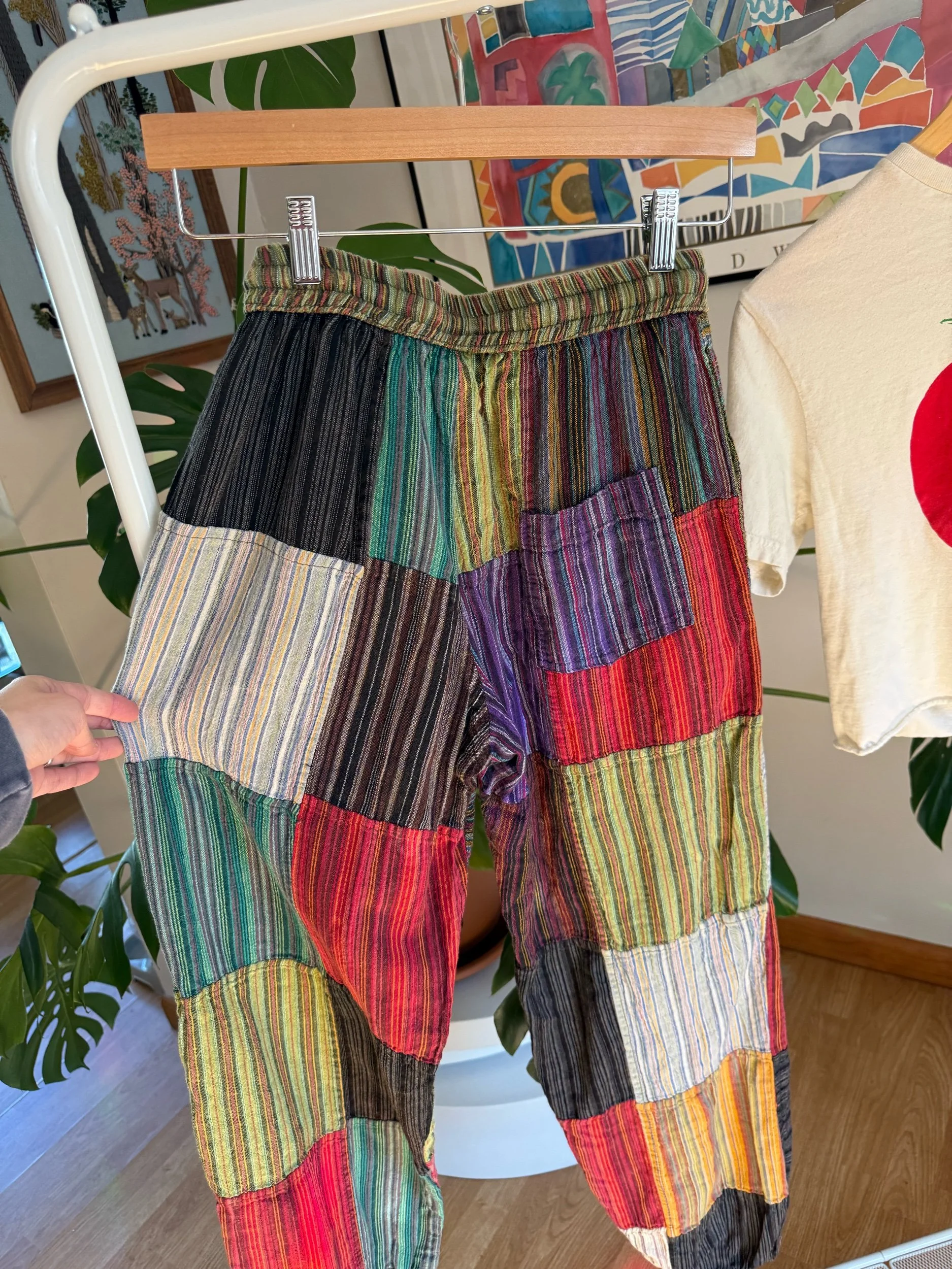 adorable fun patchwork boho pants, that remind me of Elmer the elephant :)