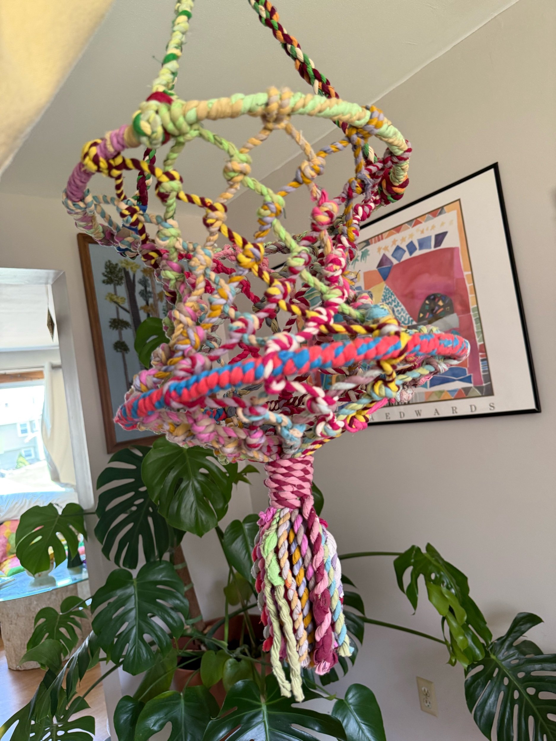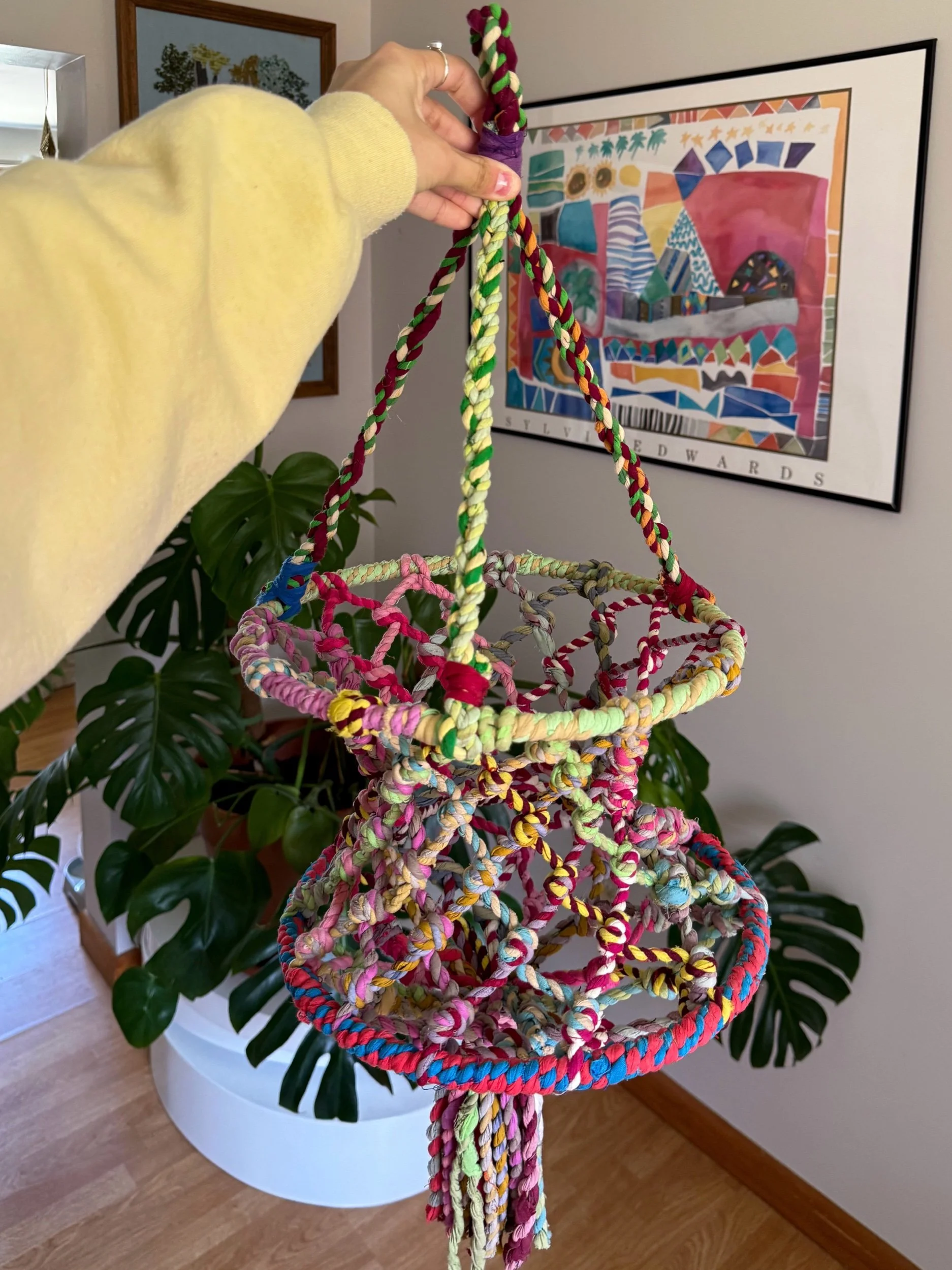 This plant holder hanging is so colorful & whimsical!