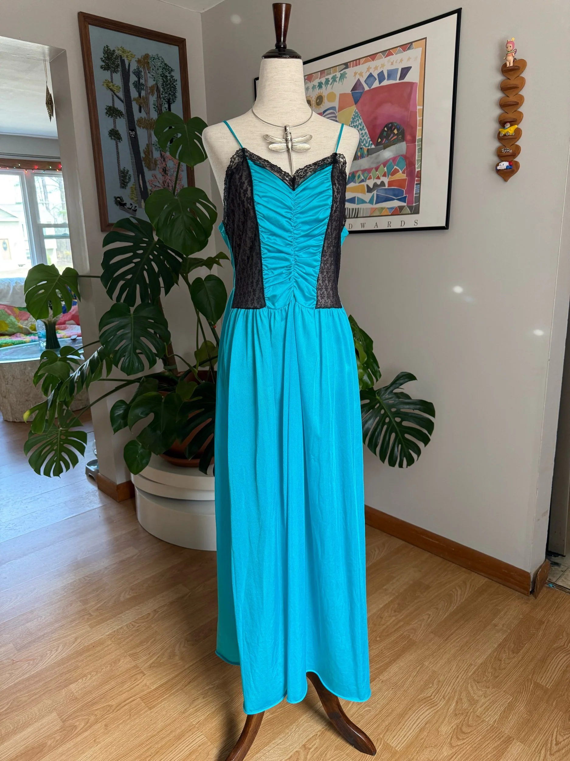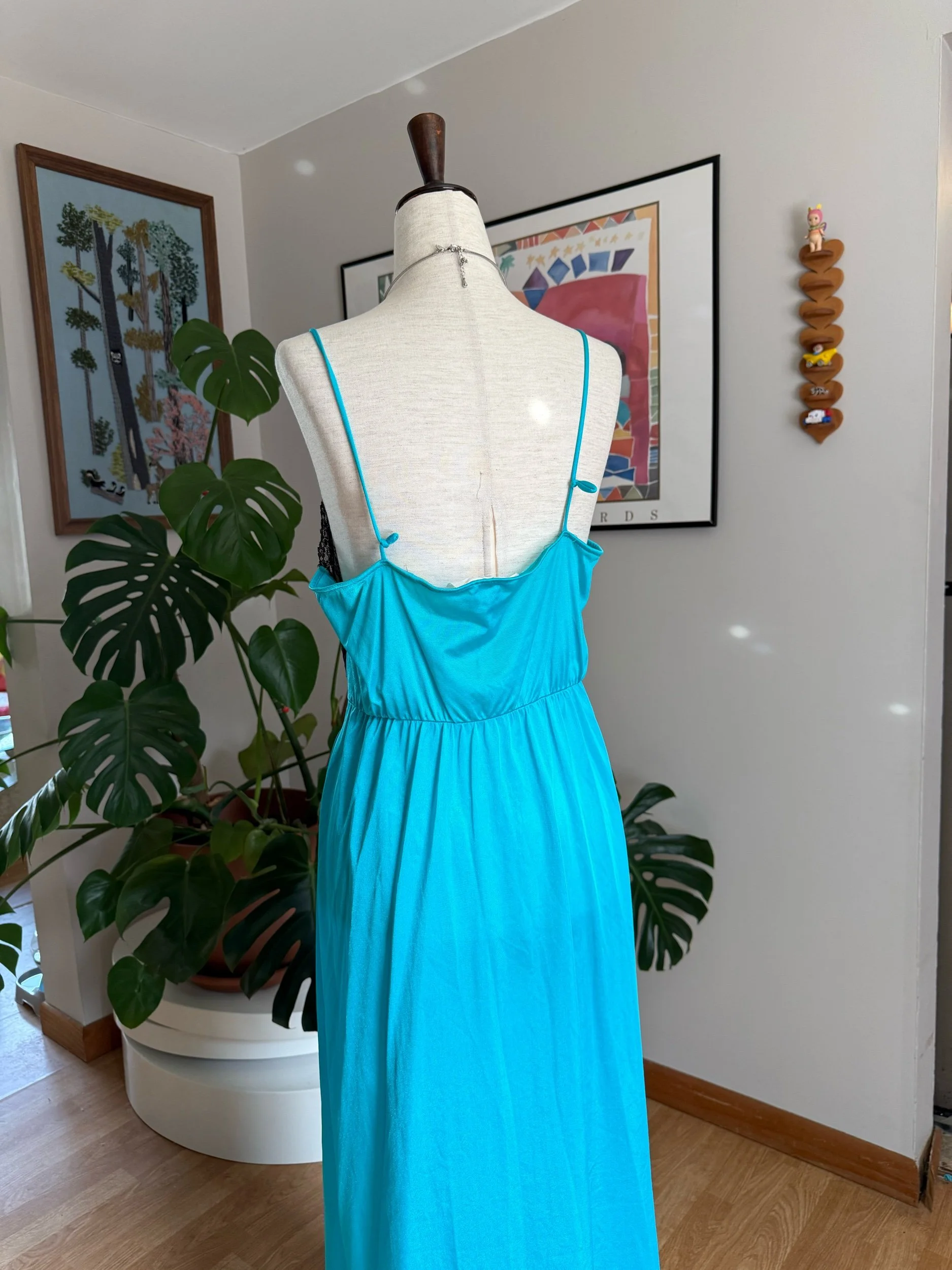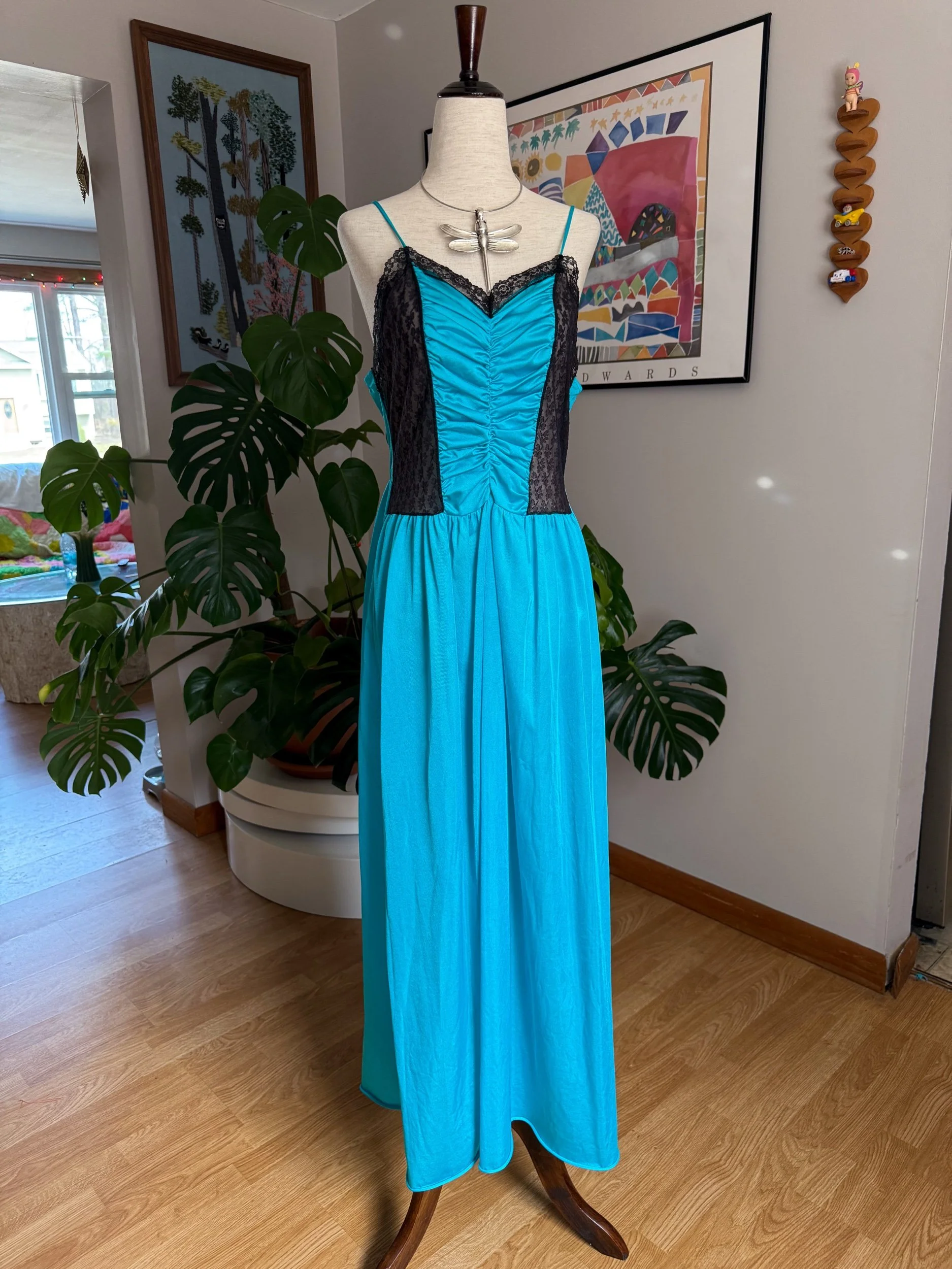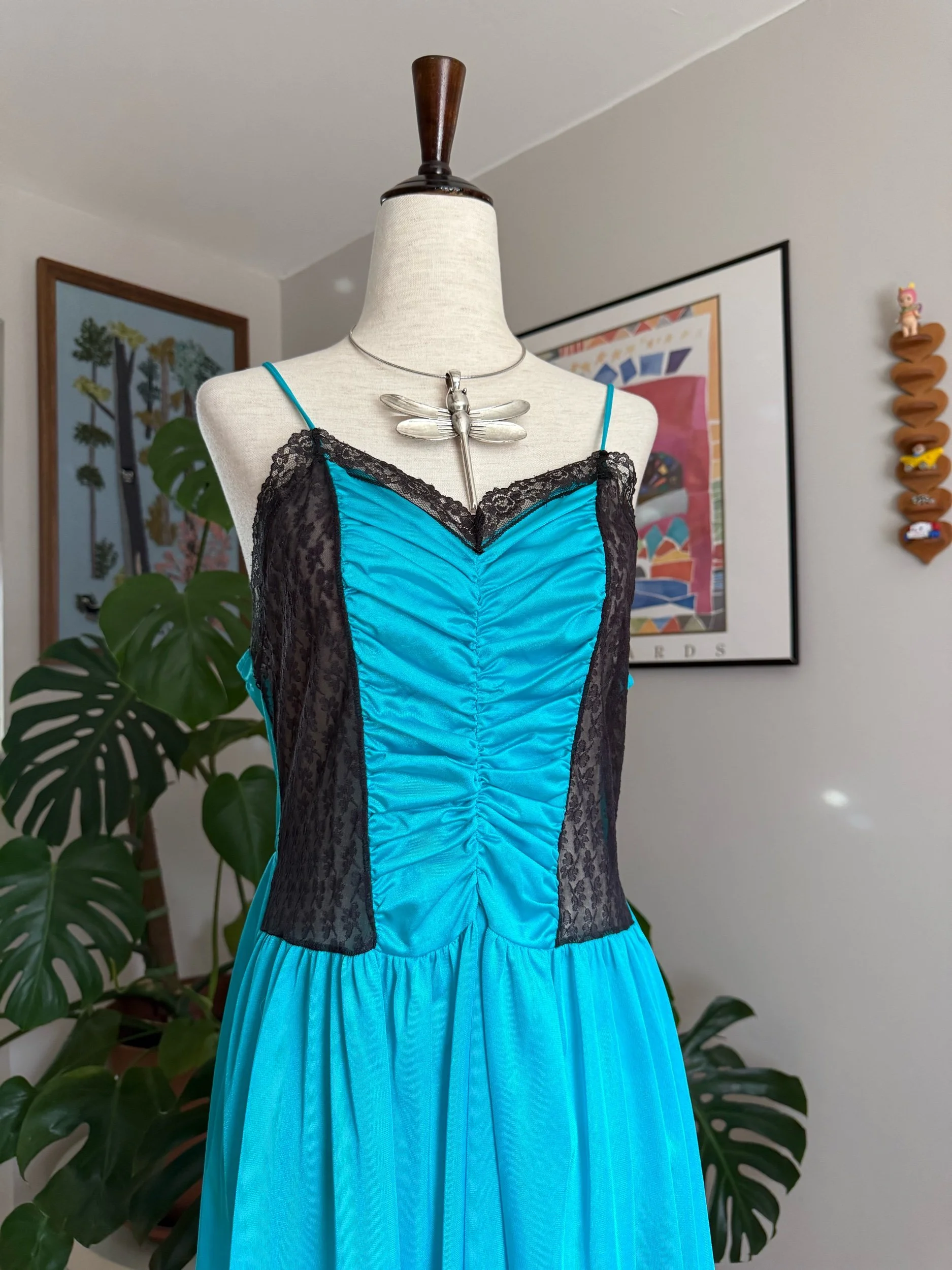 beautiful vibrant blue & black lace intimate dress / the straps are tied because they aren’t adjustable, you can always untie and re-tie to your liking!