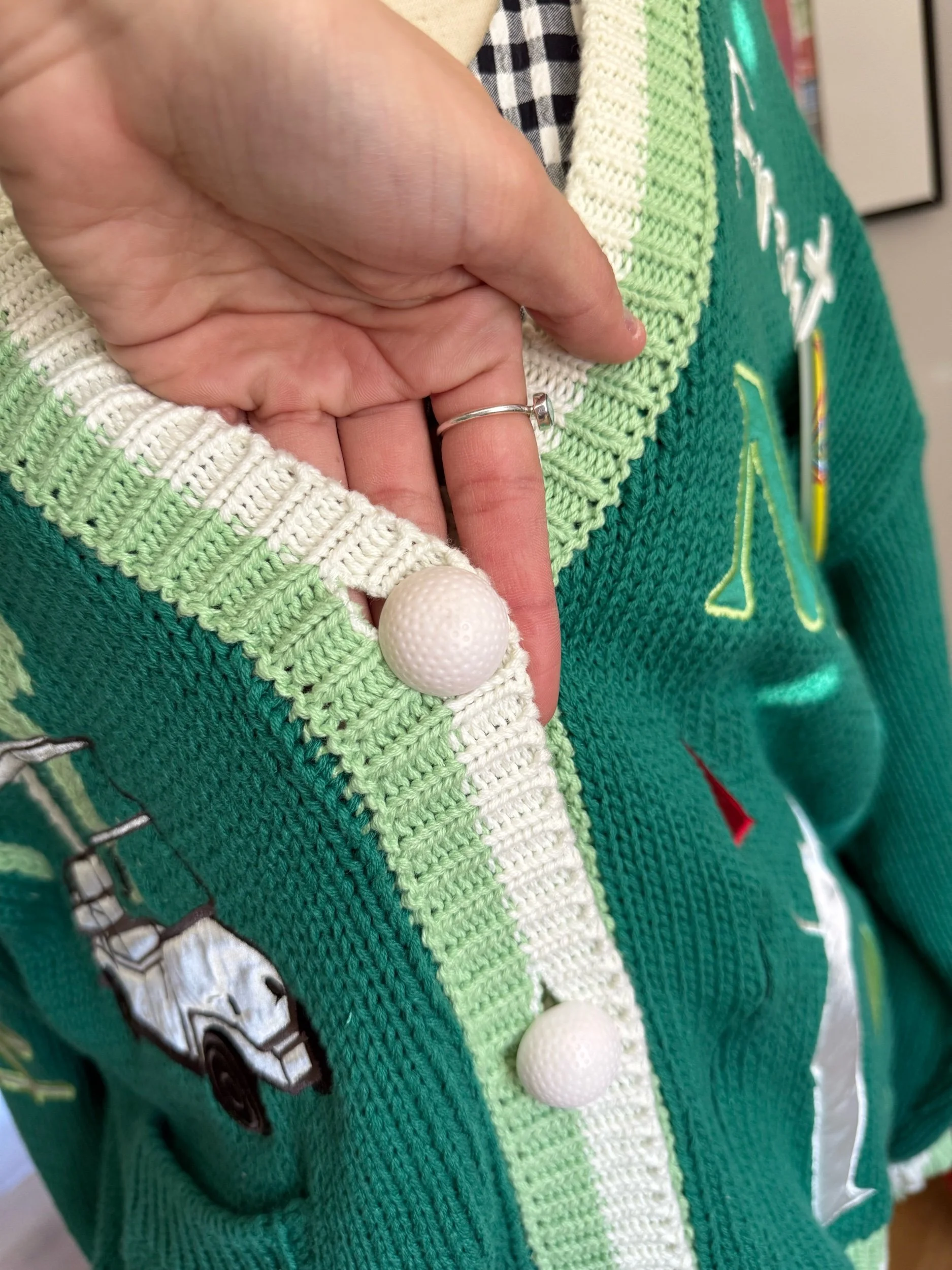RARE “NO!” Golf sweater - incredible condition! Look at the details all throughout, the embroidery is amazing! So unique & fun, even has golf ball buttons! (retails for $350)