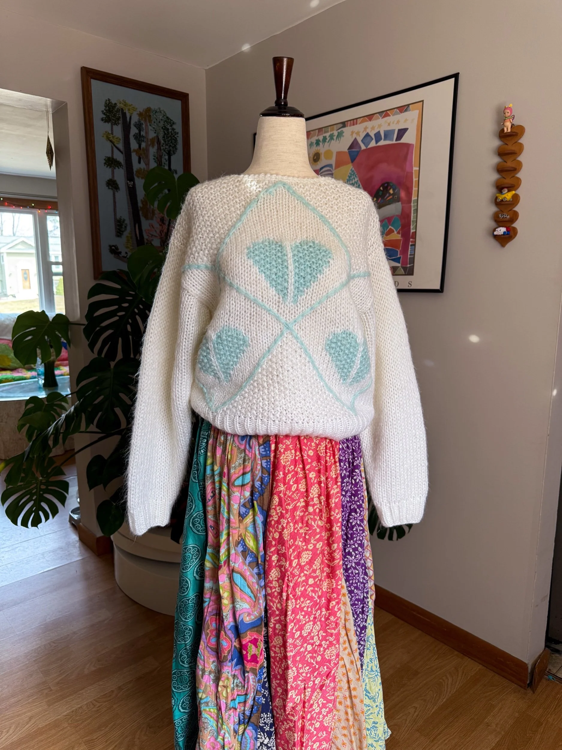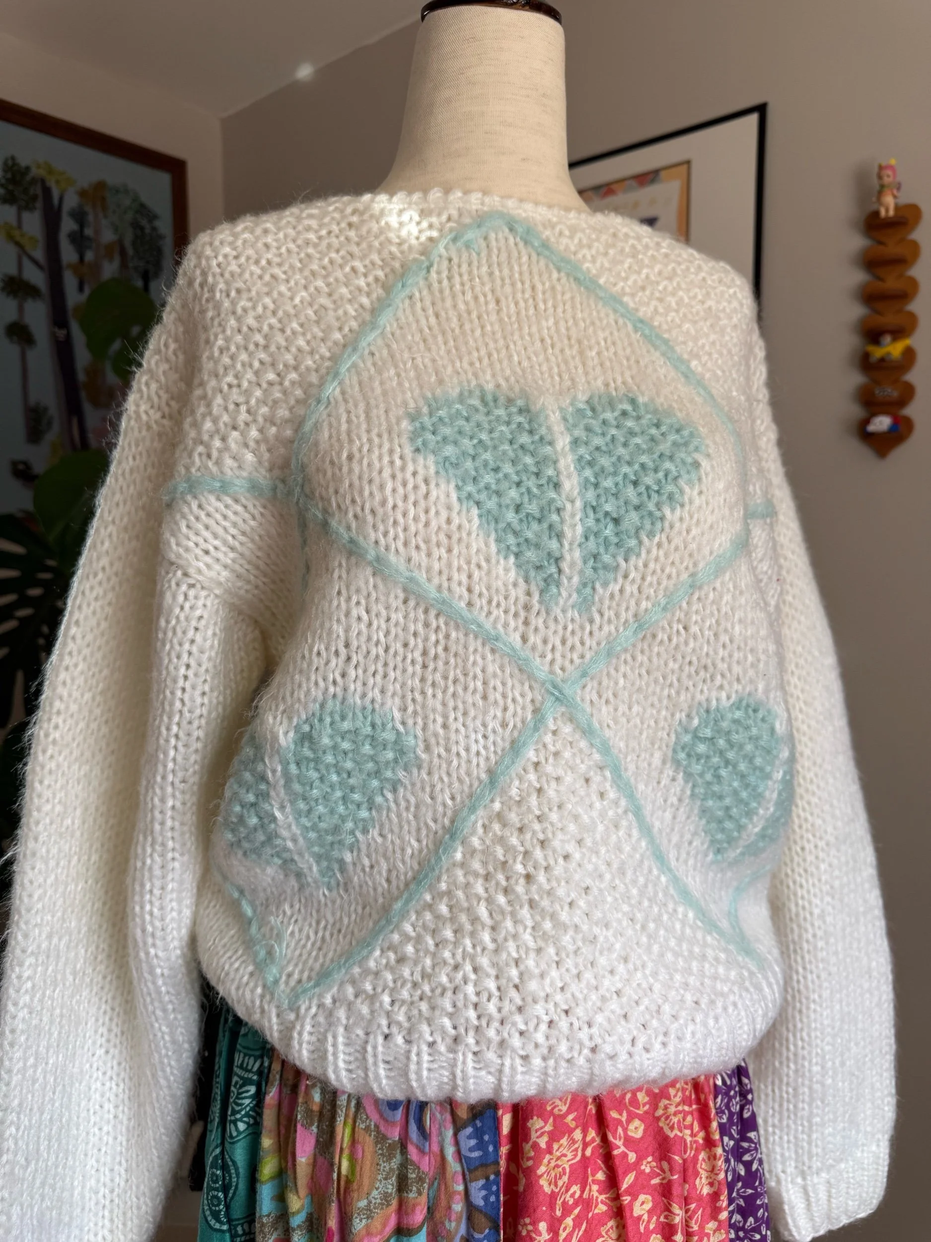 beautiful cottage core pastel sweetheart sweater :)