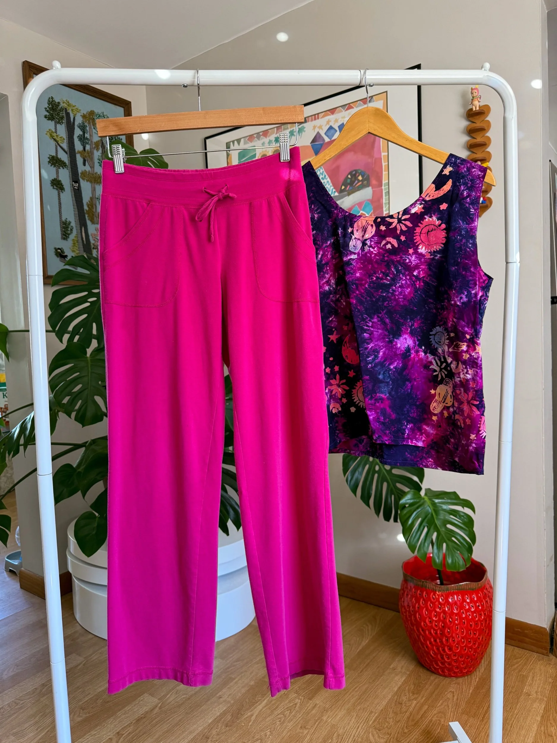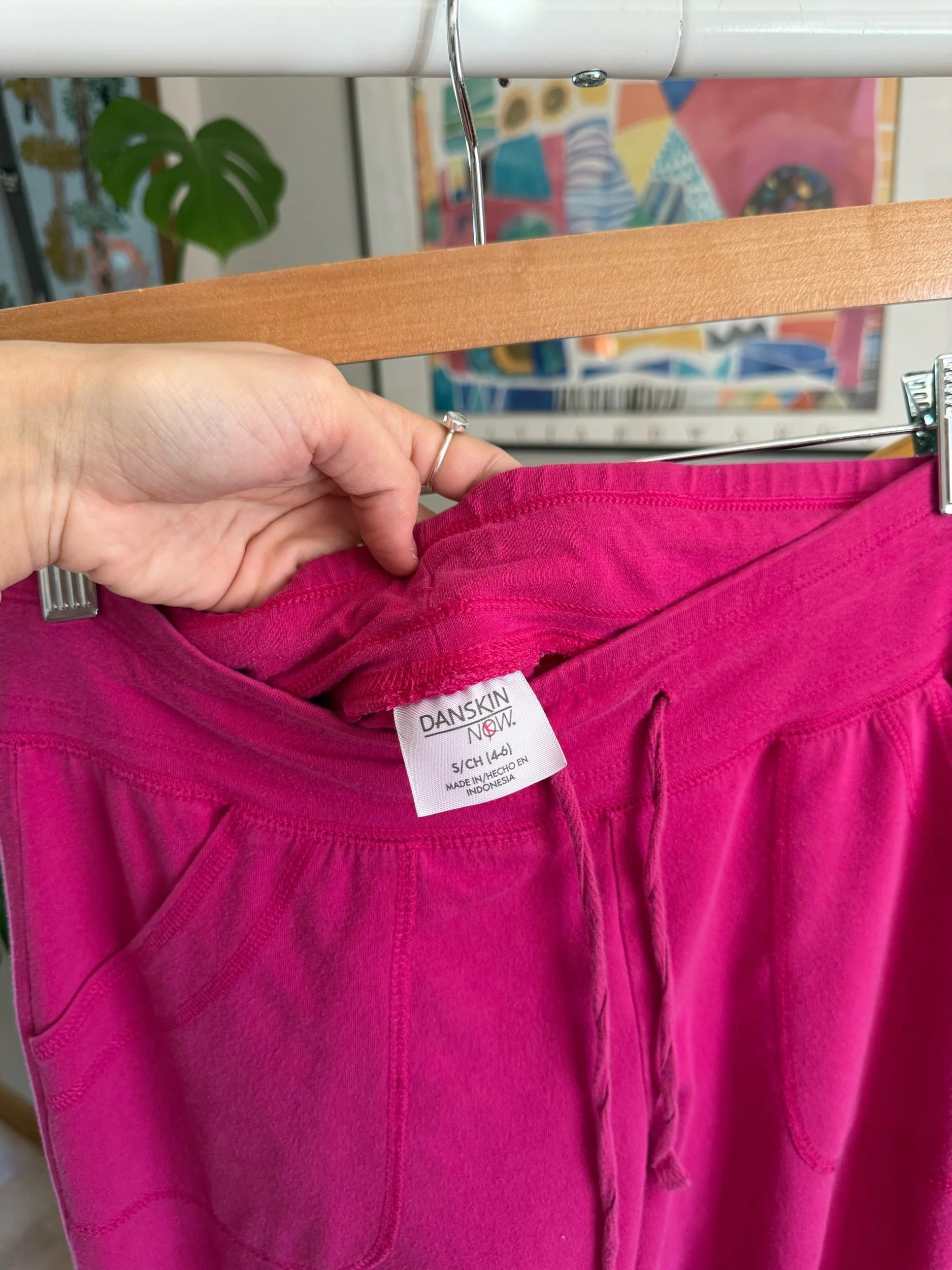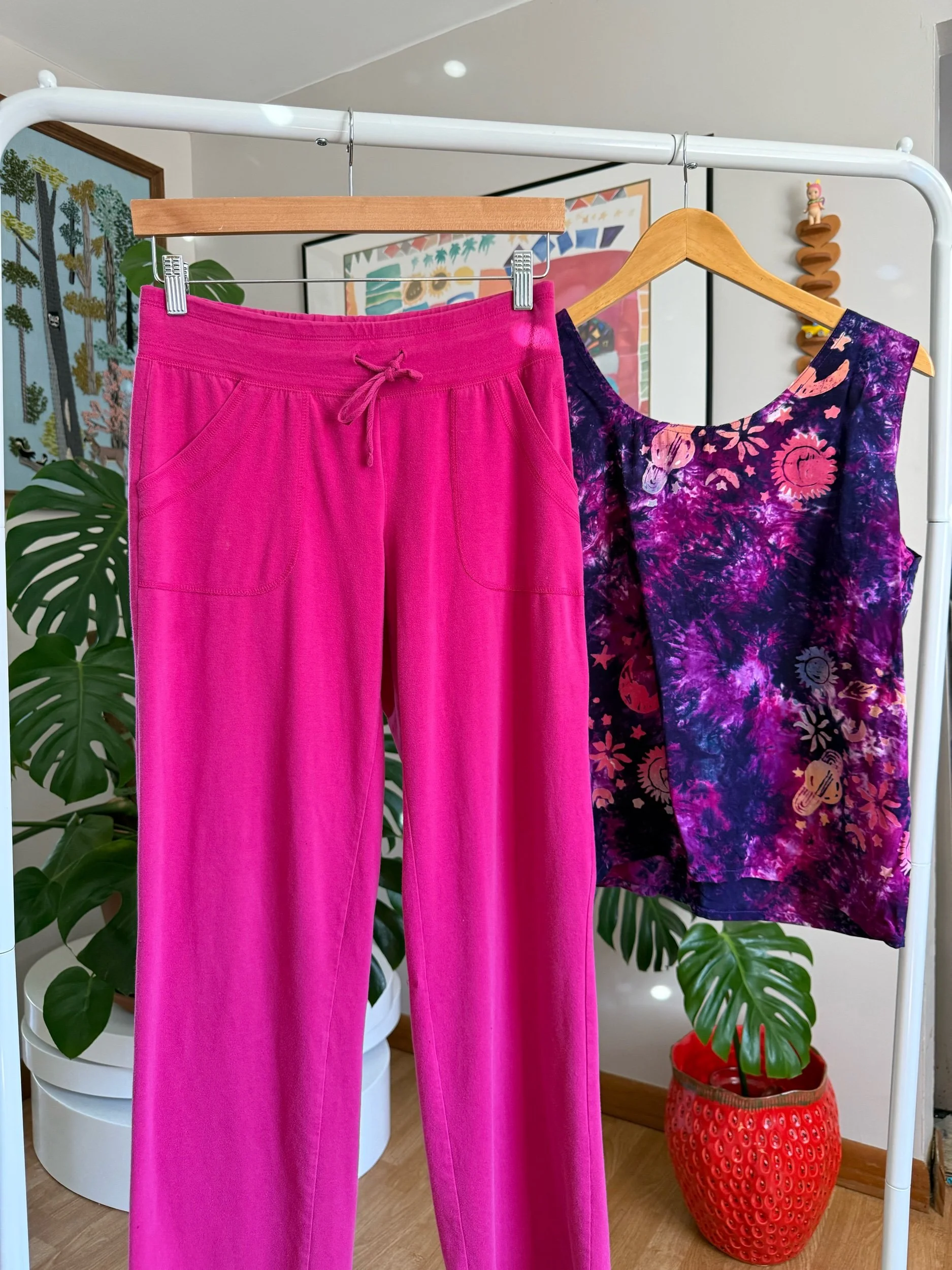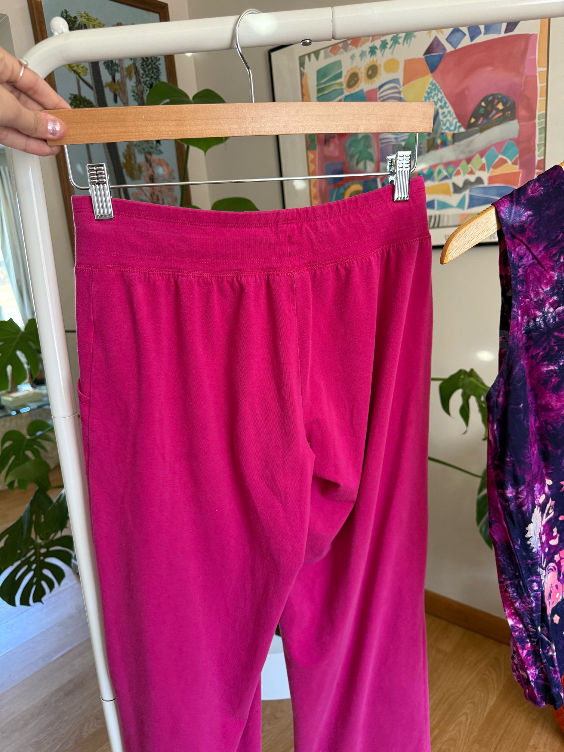 classic comfy pink track pants, with a small flare at the bottom :) has adjustable tie & pockets