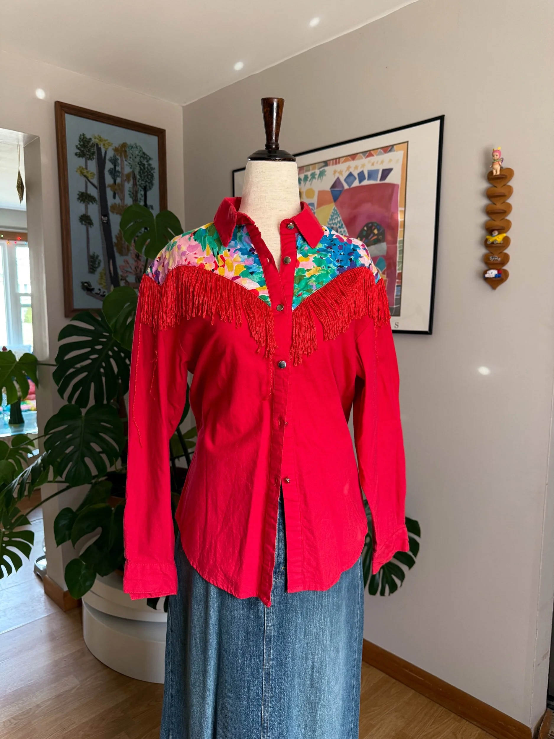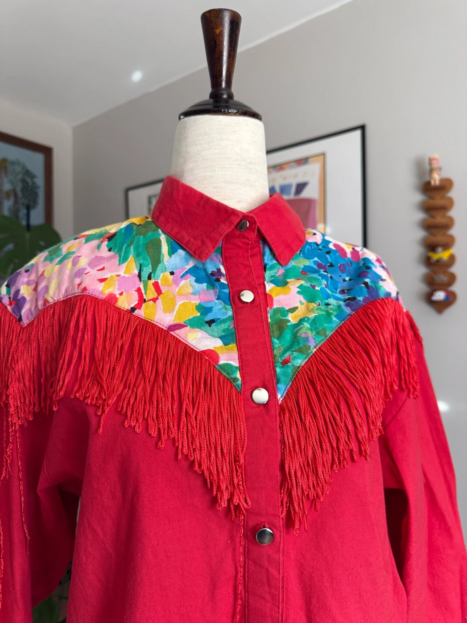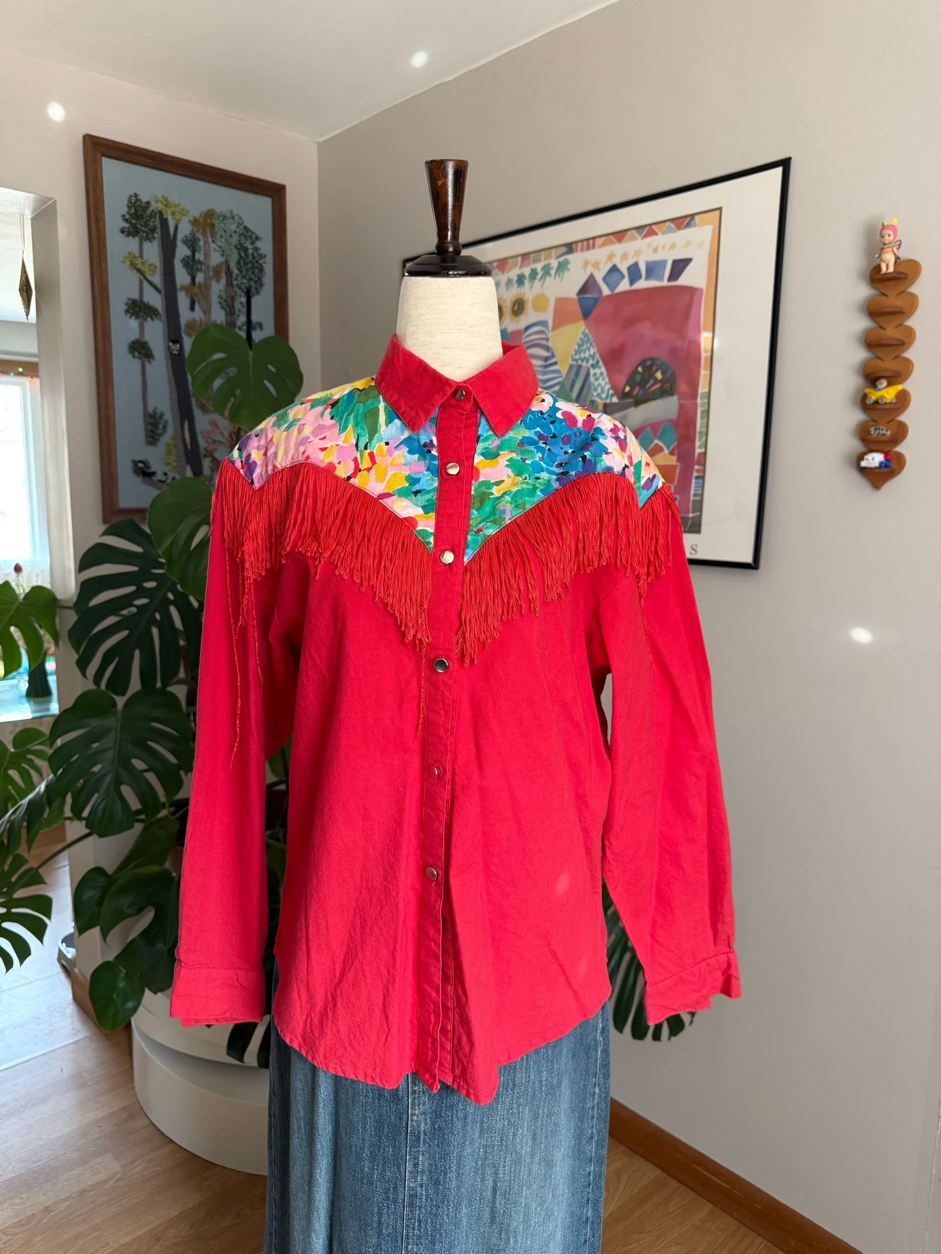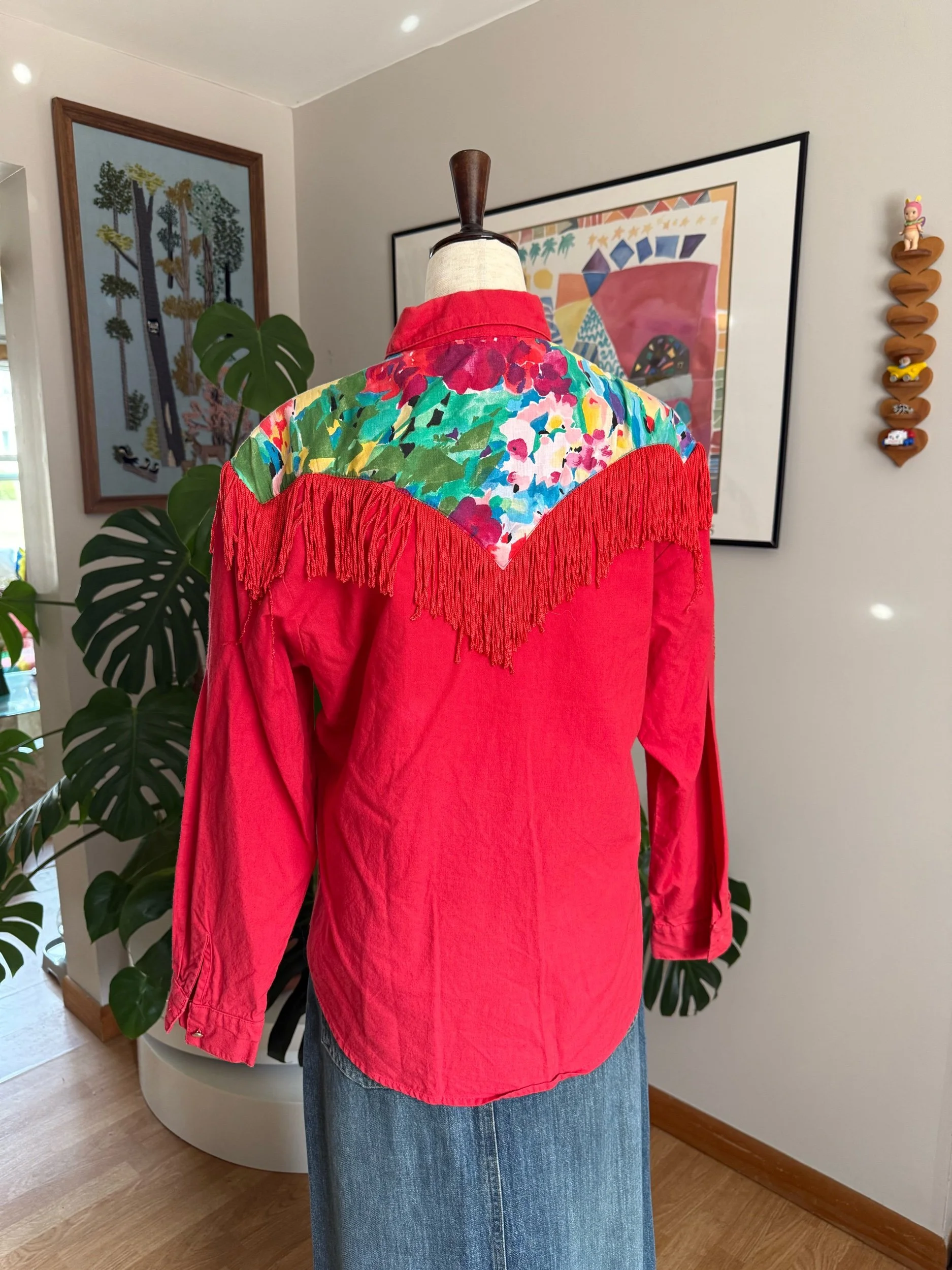 stunning & bright vintage fringe top / western with the most fun tassels on front & back / does have shoulder pads, but you can always remove them if unwanted!