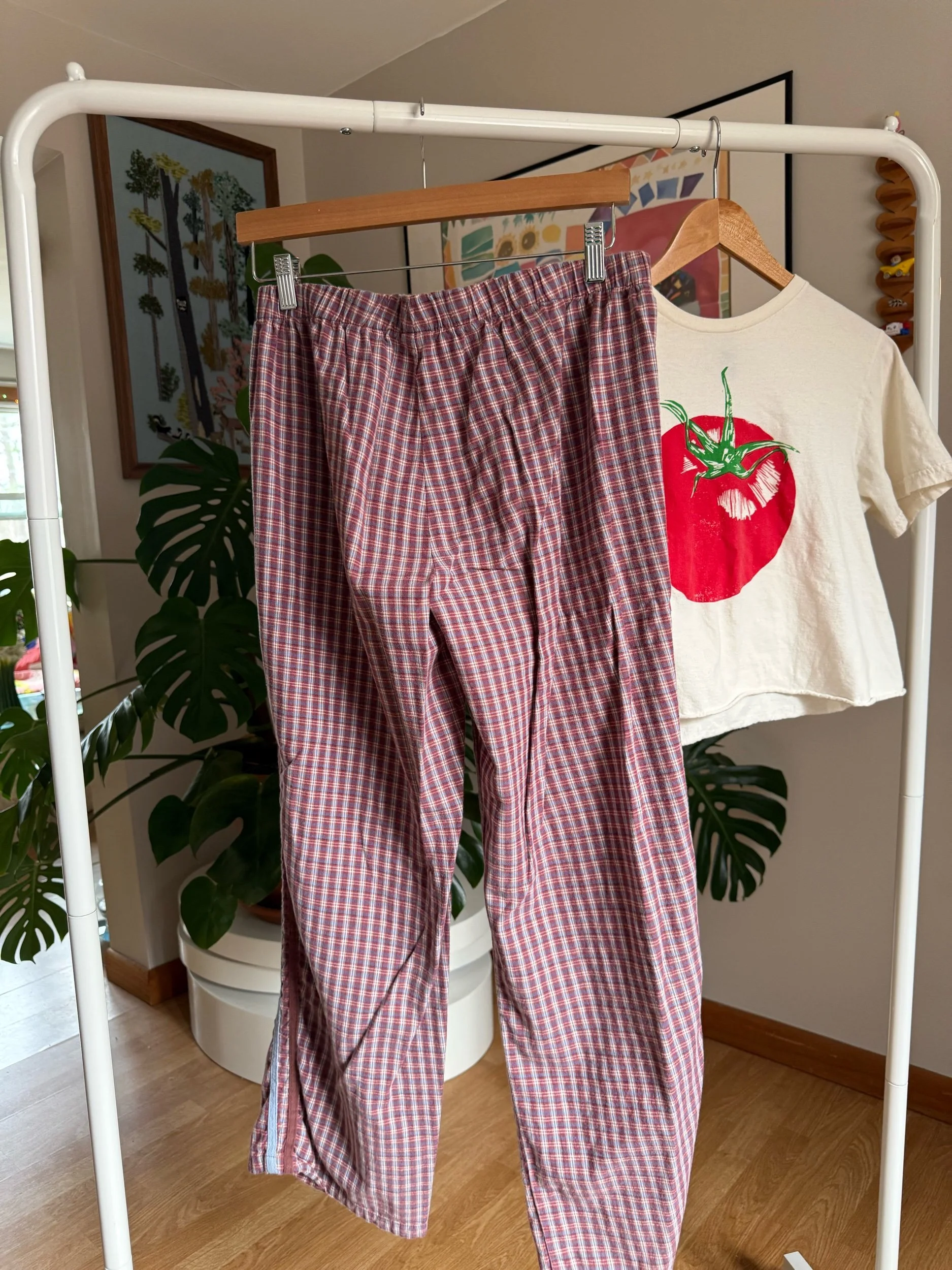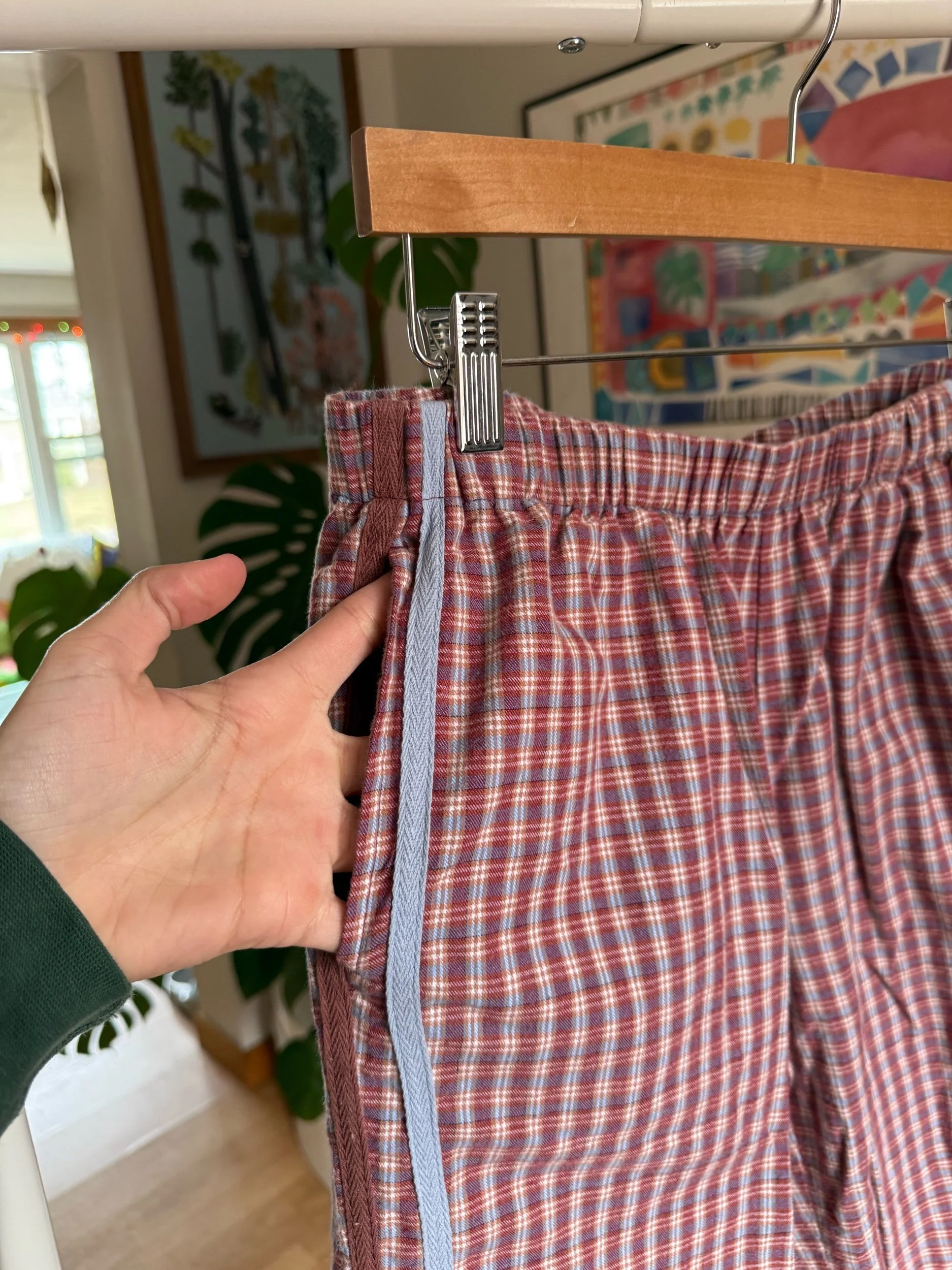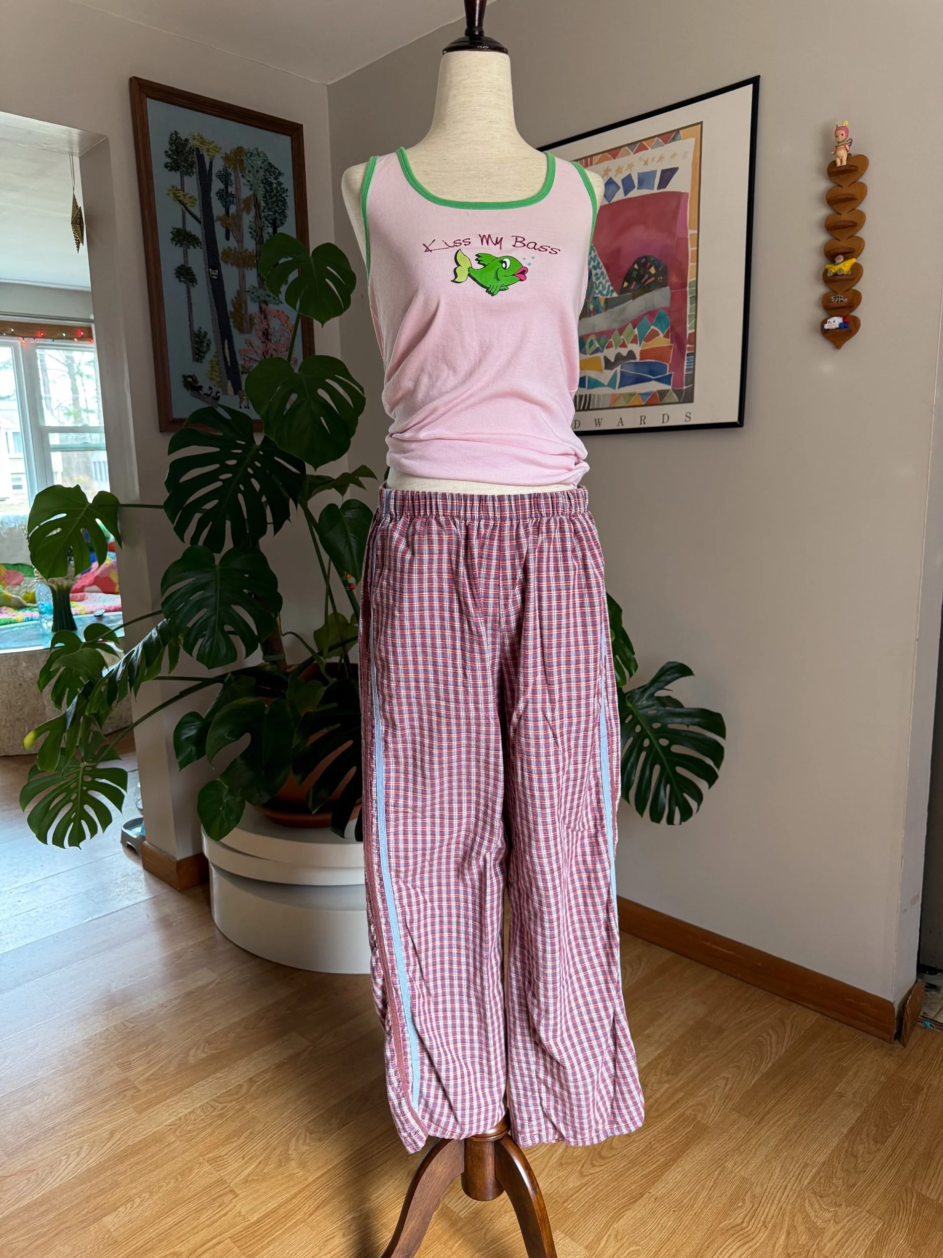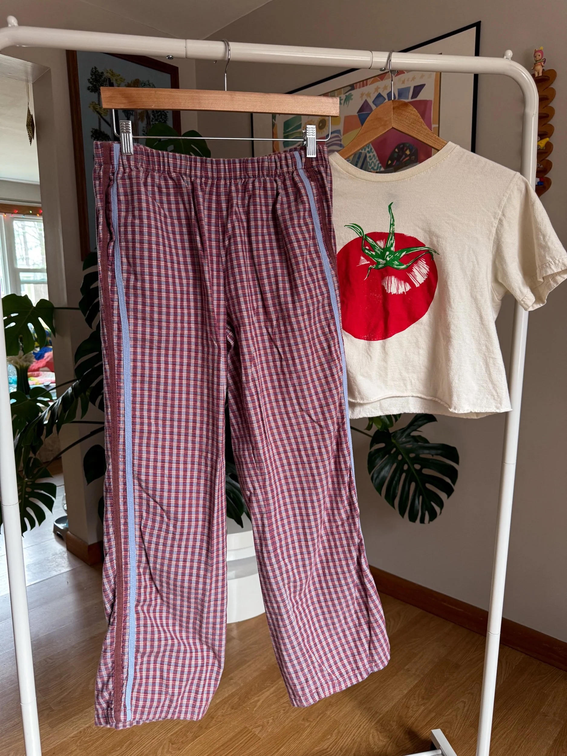 adorable plaid pants with fun stripes down the sides! They have pockets :)