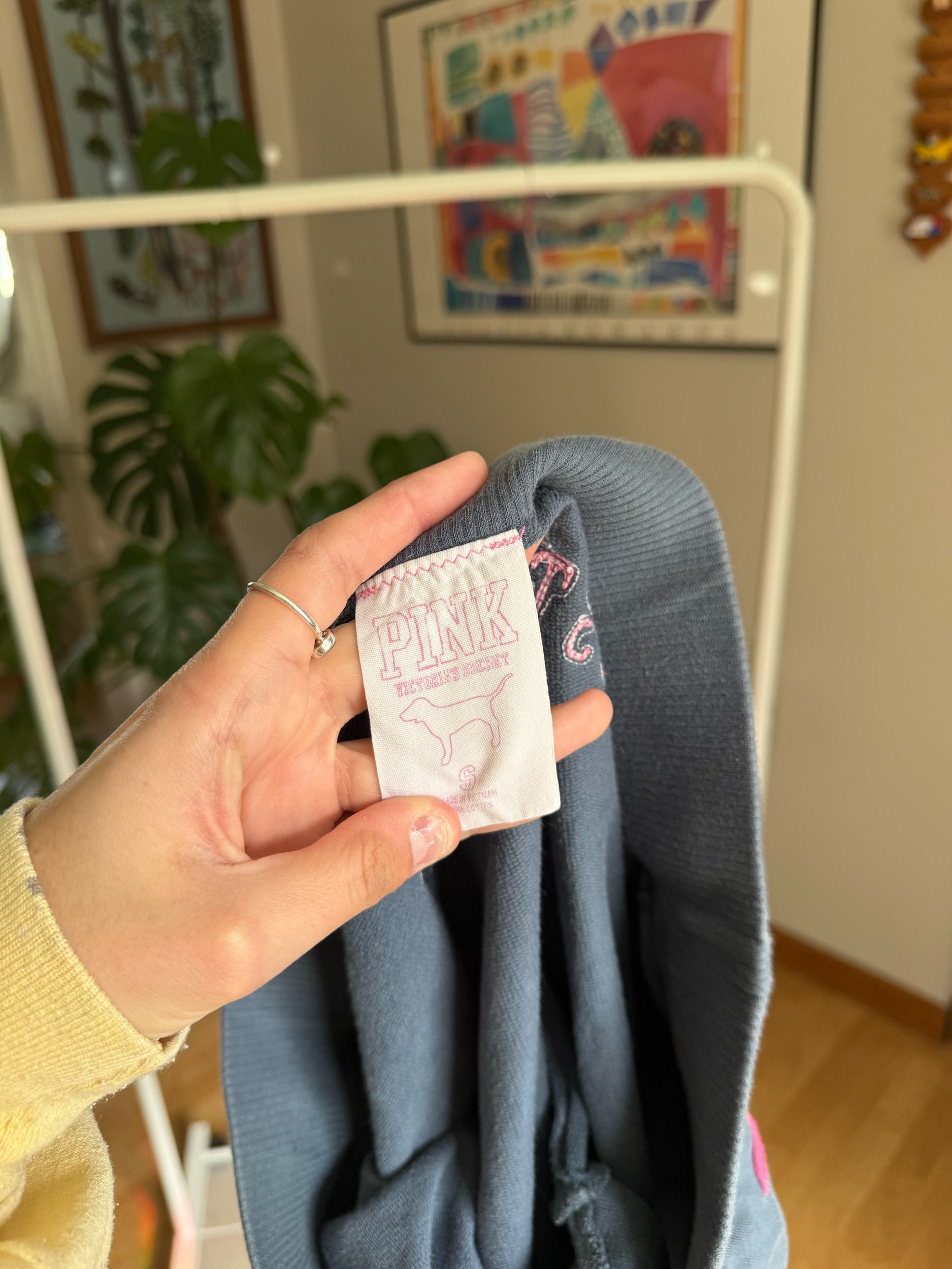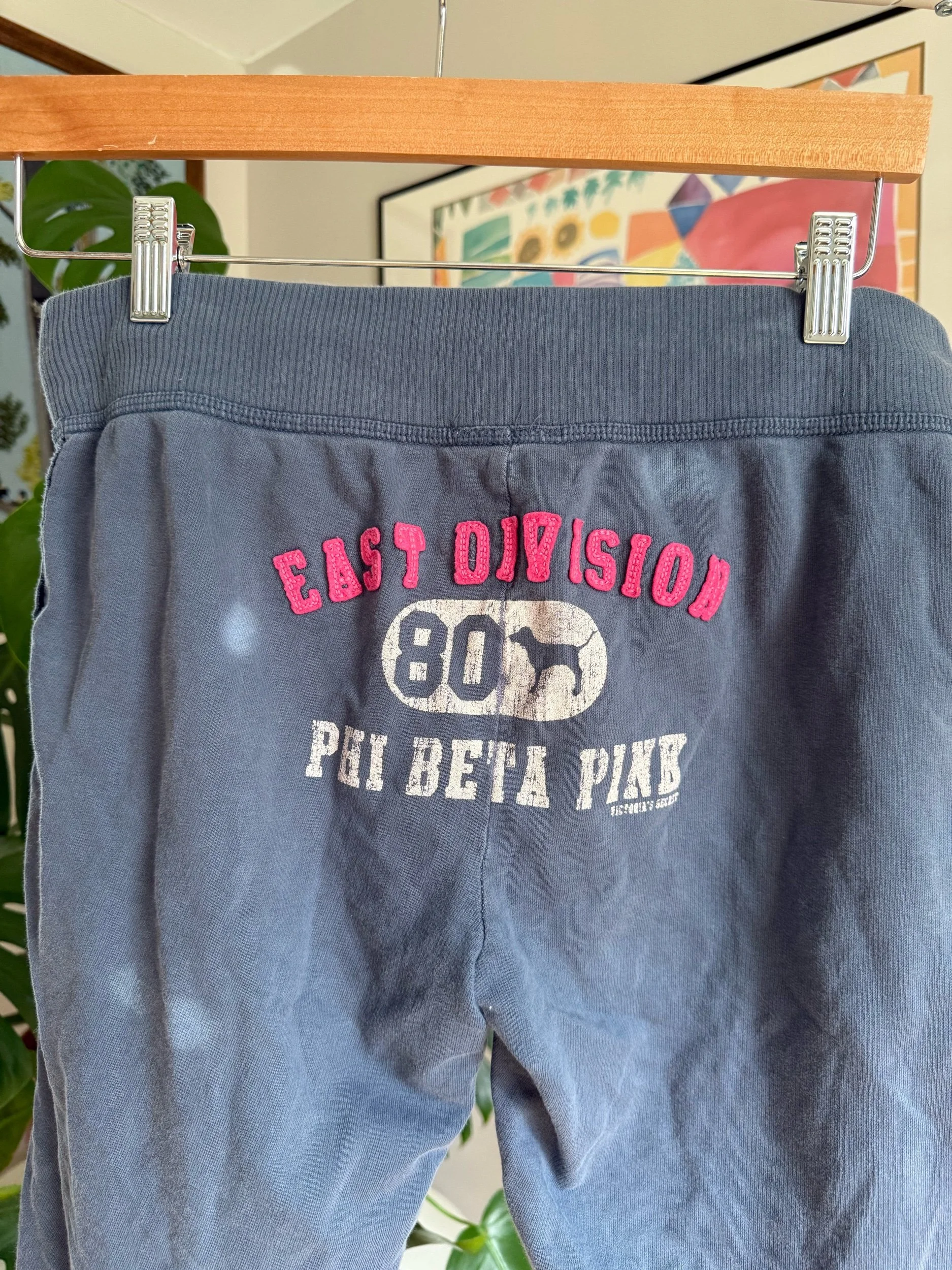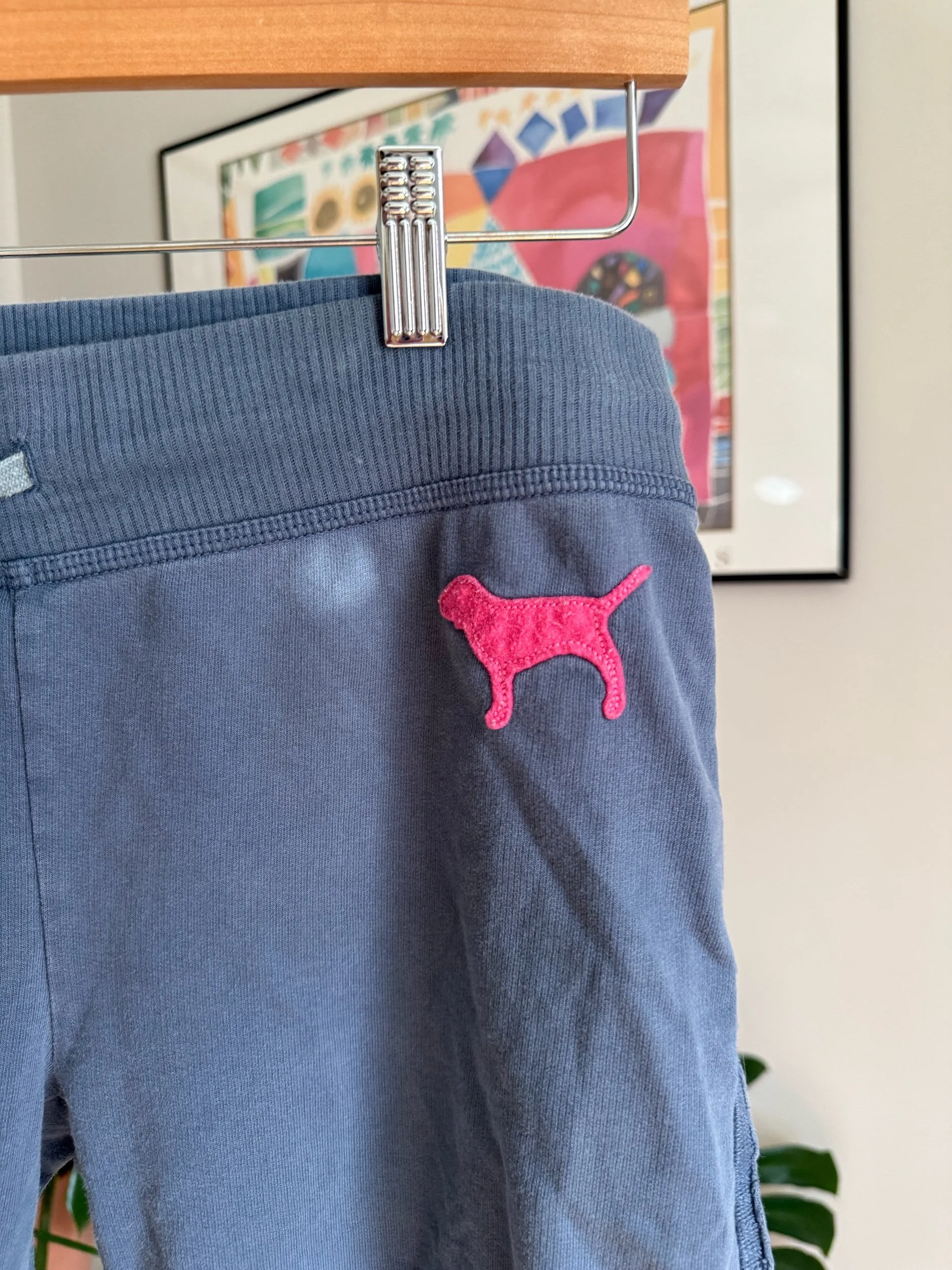 cutie early 2000s sweatpant capris, with lettering on the back & classic cute pink dog on the front!!