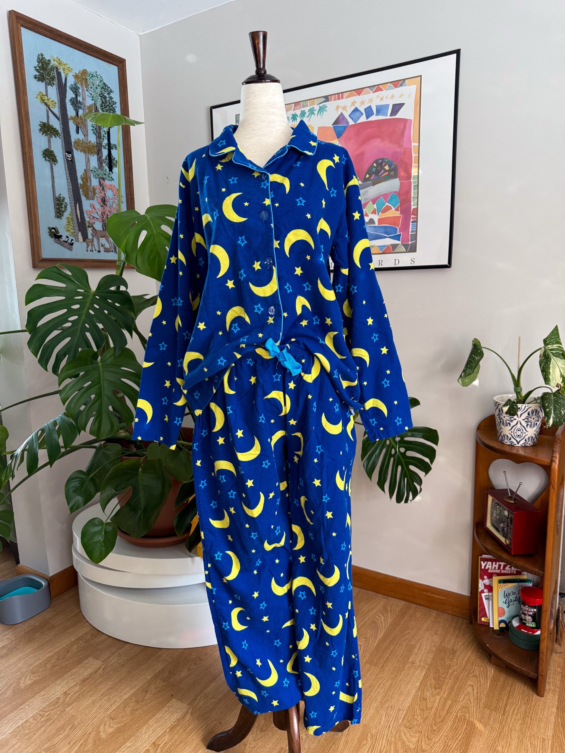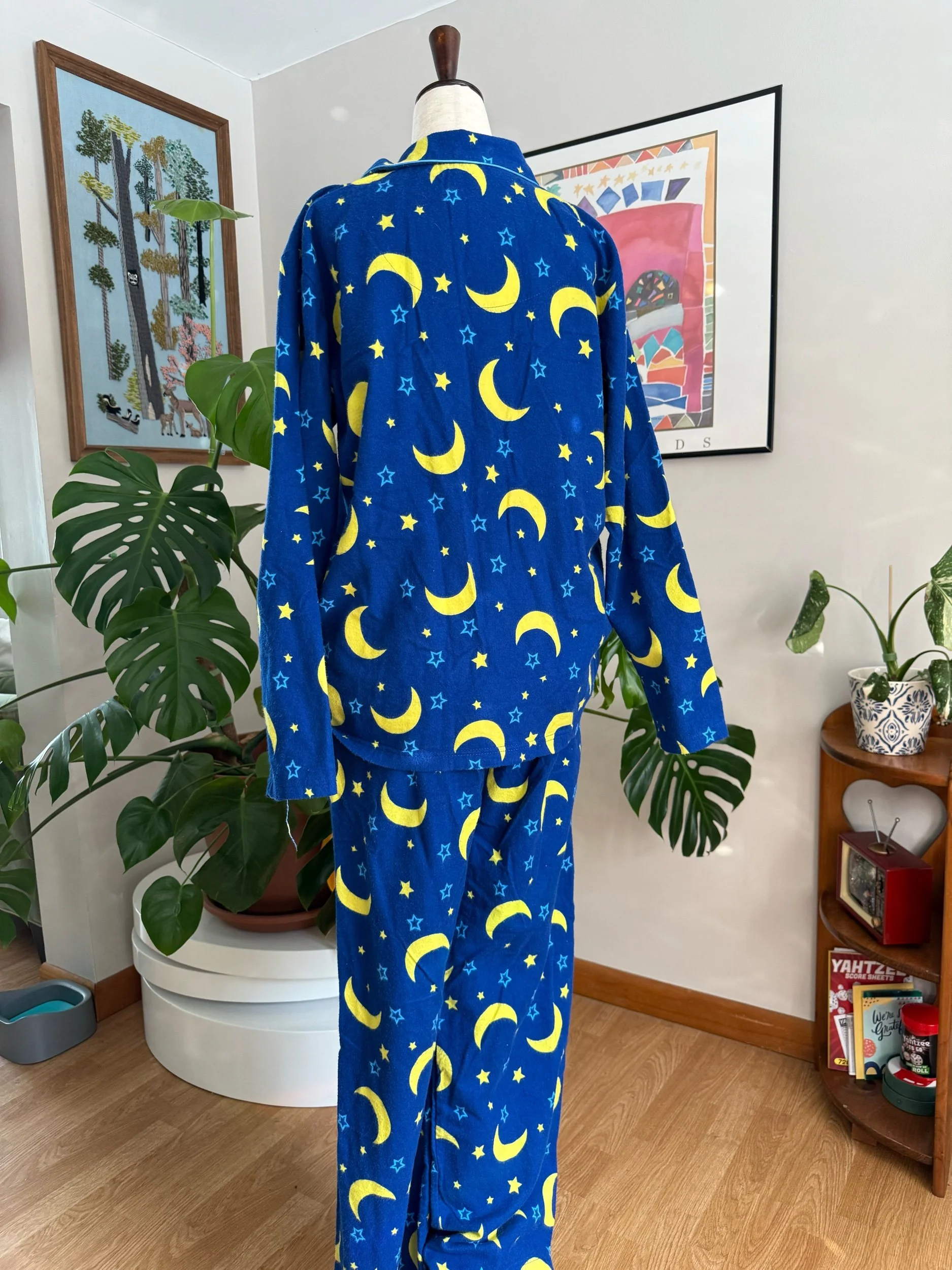 Shop › Celestial Pajama Set Dark Blue Image 1 of 4 Image 2 of 4 Image 3 of 4 Image 4 of 4 Celestial Pajama Set Dark Blue $38.00 sold out size largetop:pit to pit 21”length 25”bottoms:waist 15”inseam 29”100% cottonthe coziest!!! pants have drawstring :) Sold Out Added! size largetop:pit to pit 21”length 25”bottoms:waist 15”inseam 29”100% cottonthe coziest!!! pants have drawstring :)