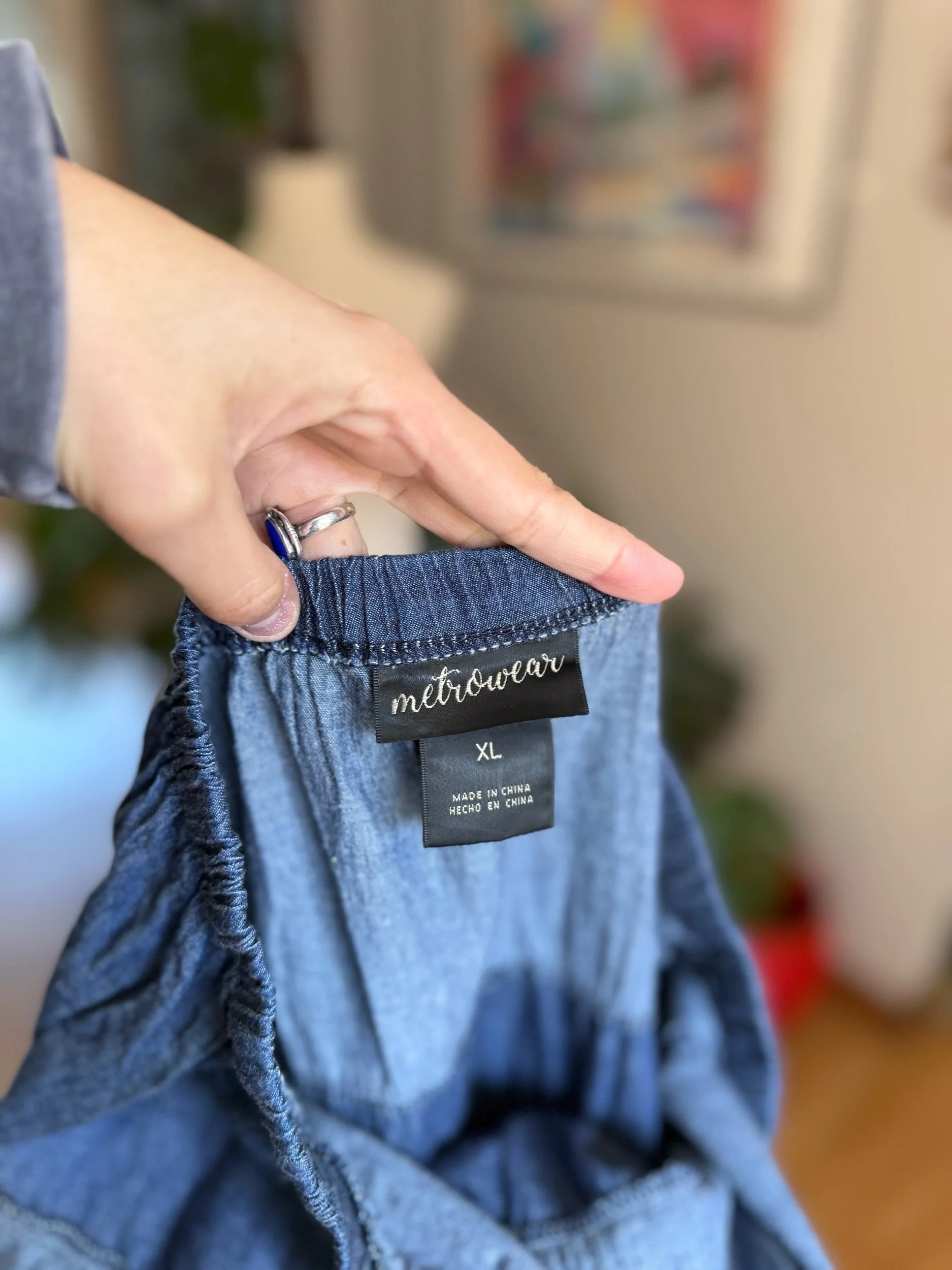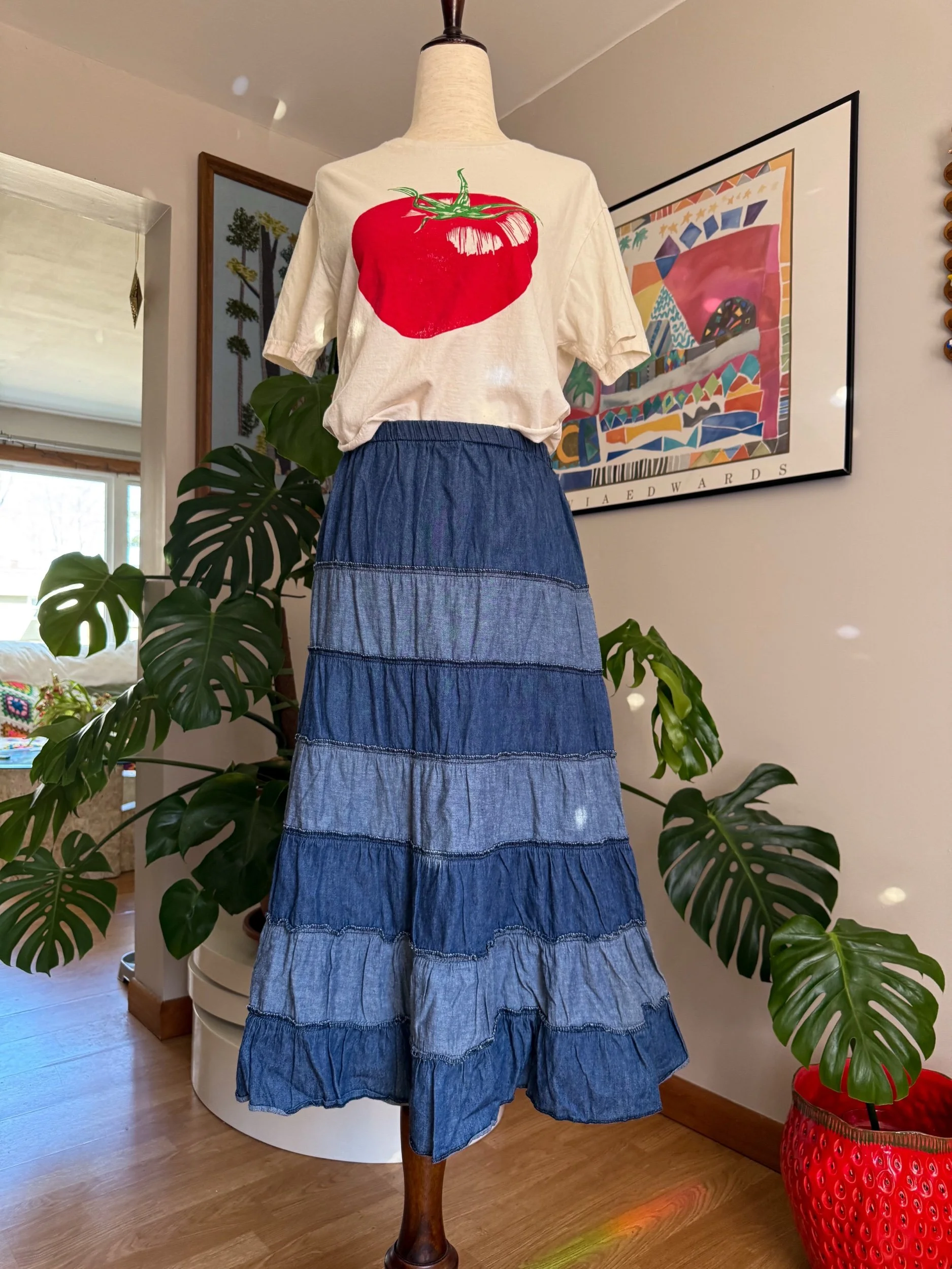 beautiful cotton vintage tiered denim skirt / love the different washes