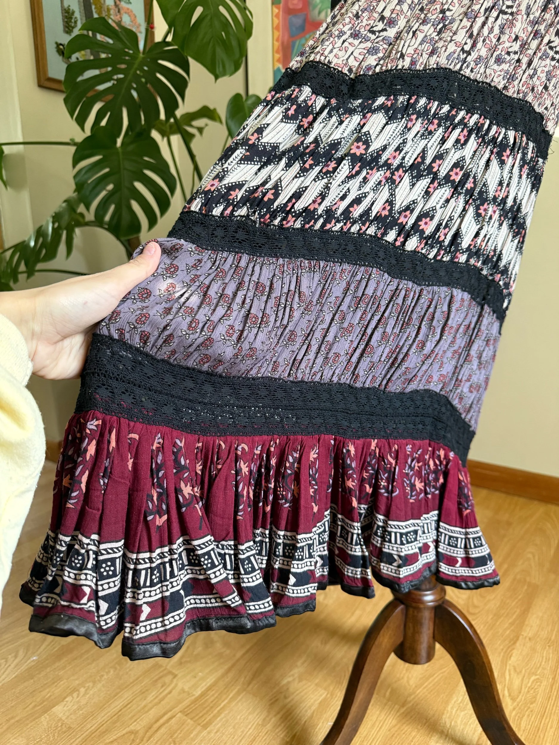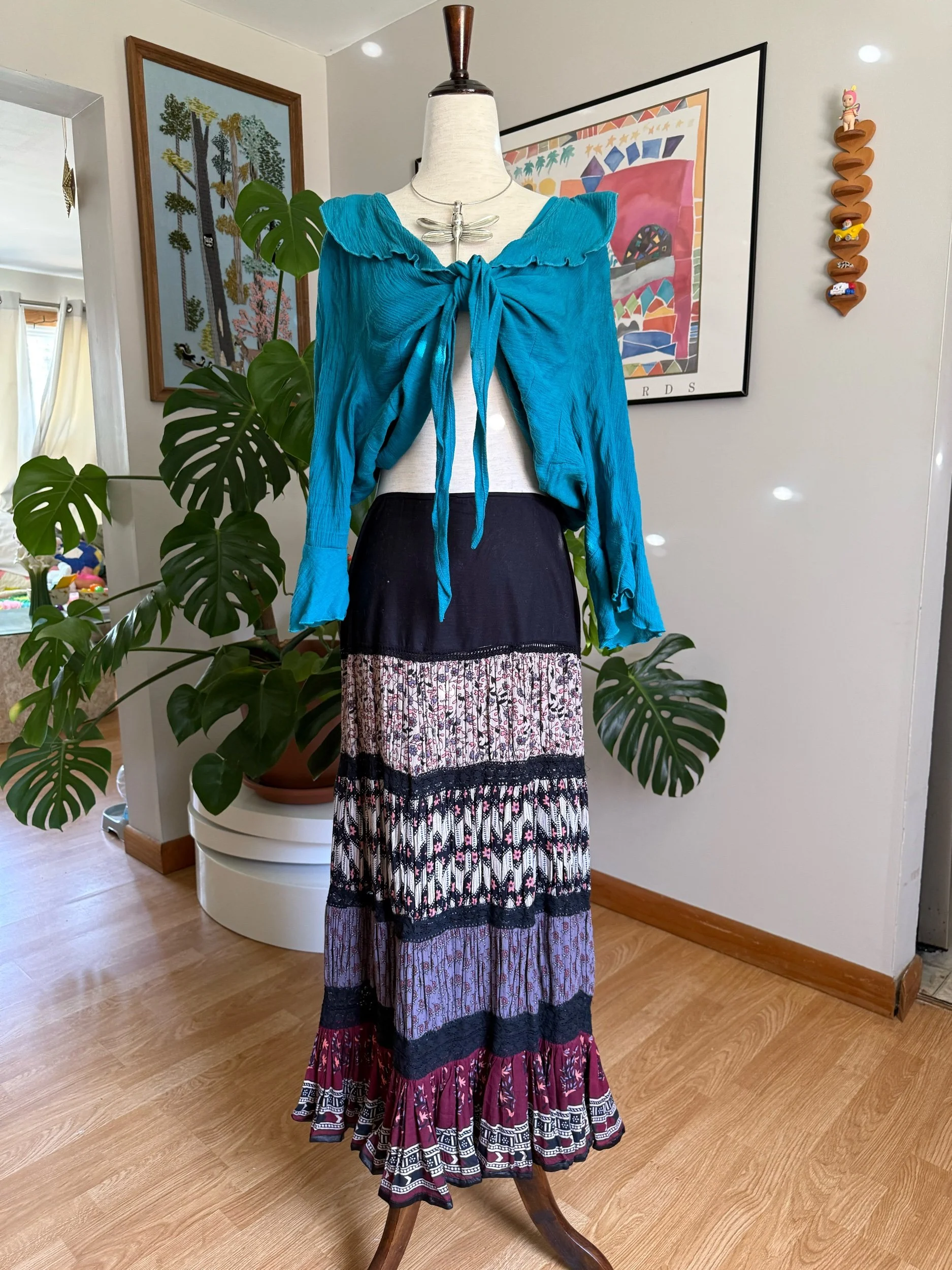 I love the layers and textures of this - so whimsical & earthy :) the top section is more form fitting & has a side zipper!