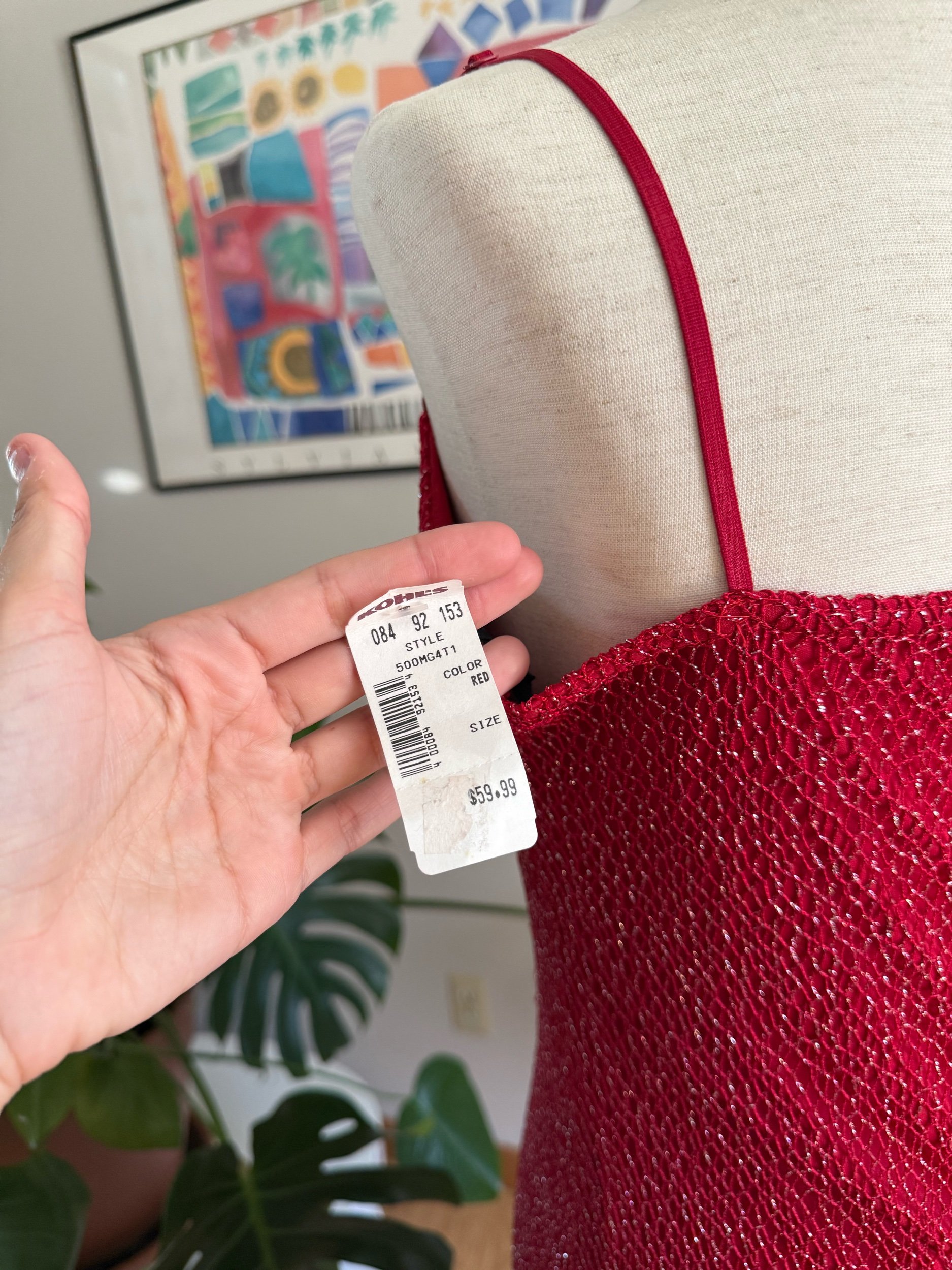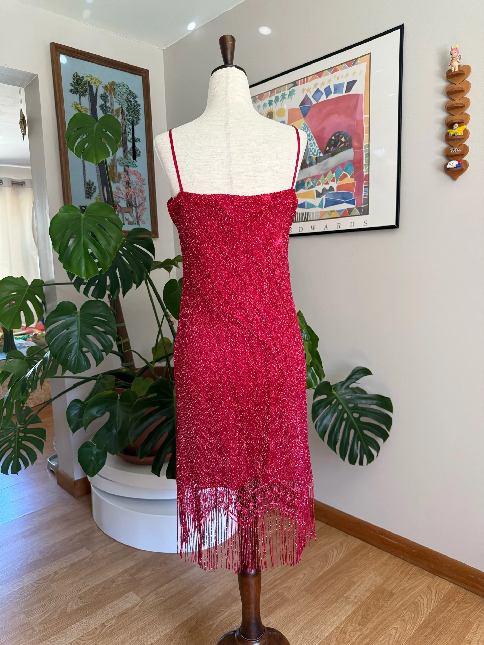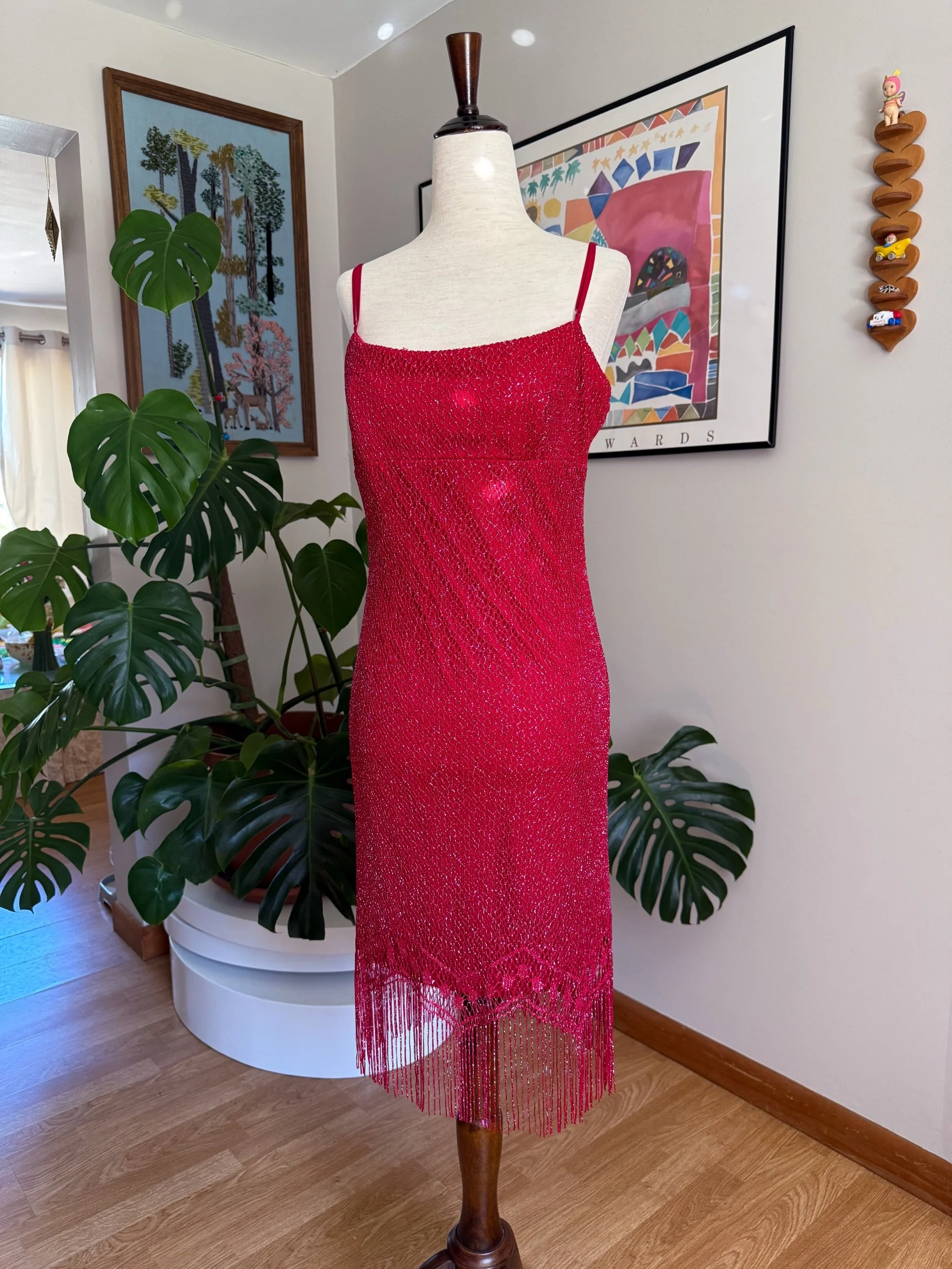 Stunning vintage new with tags sparkly red tassel mini dress / has adjustable straps :)