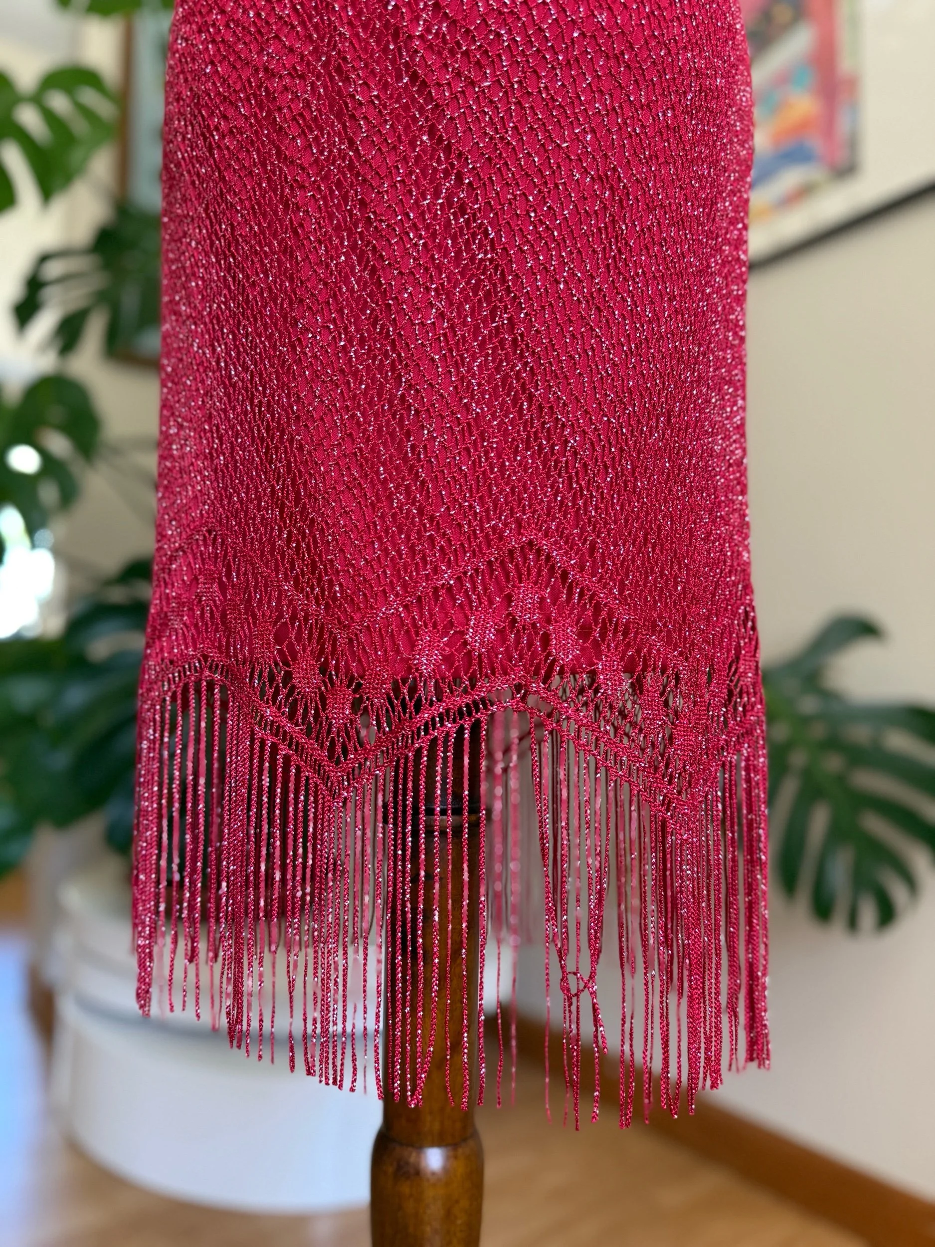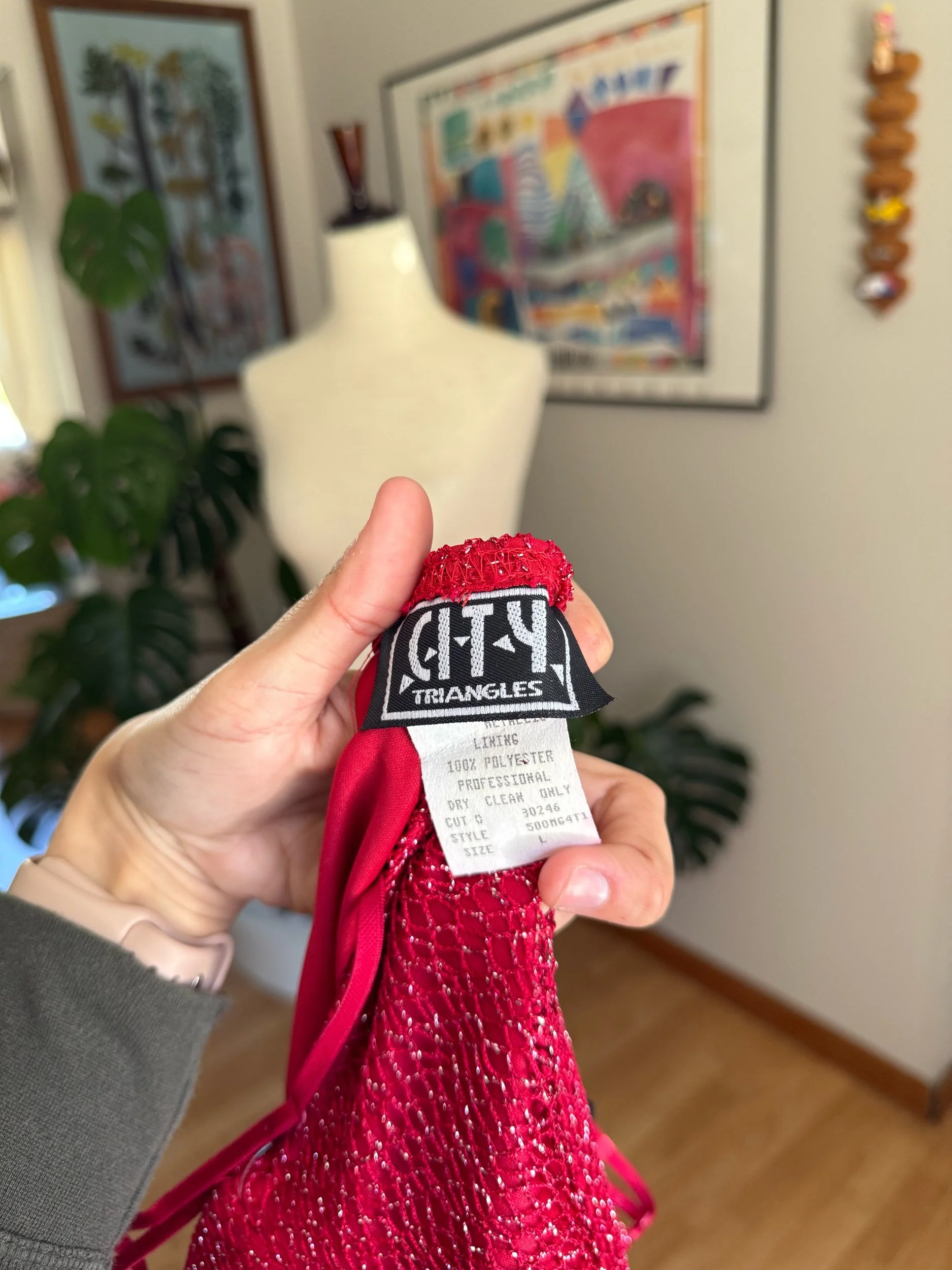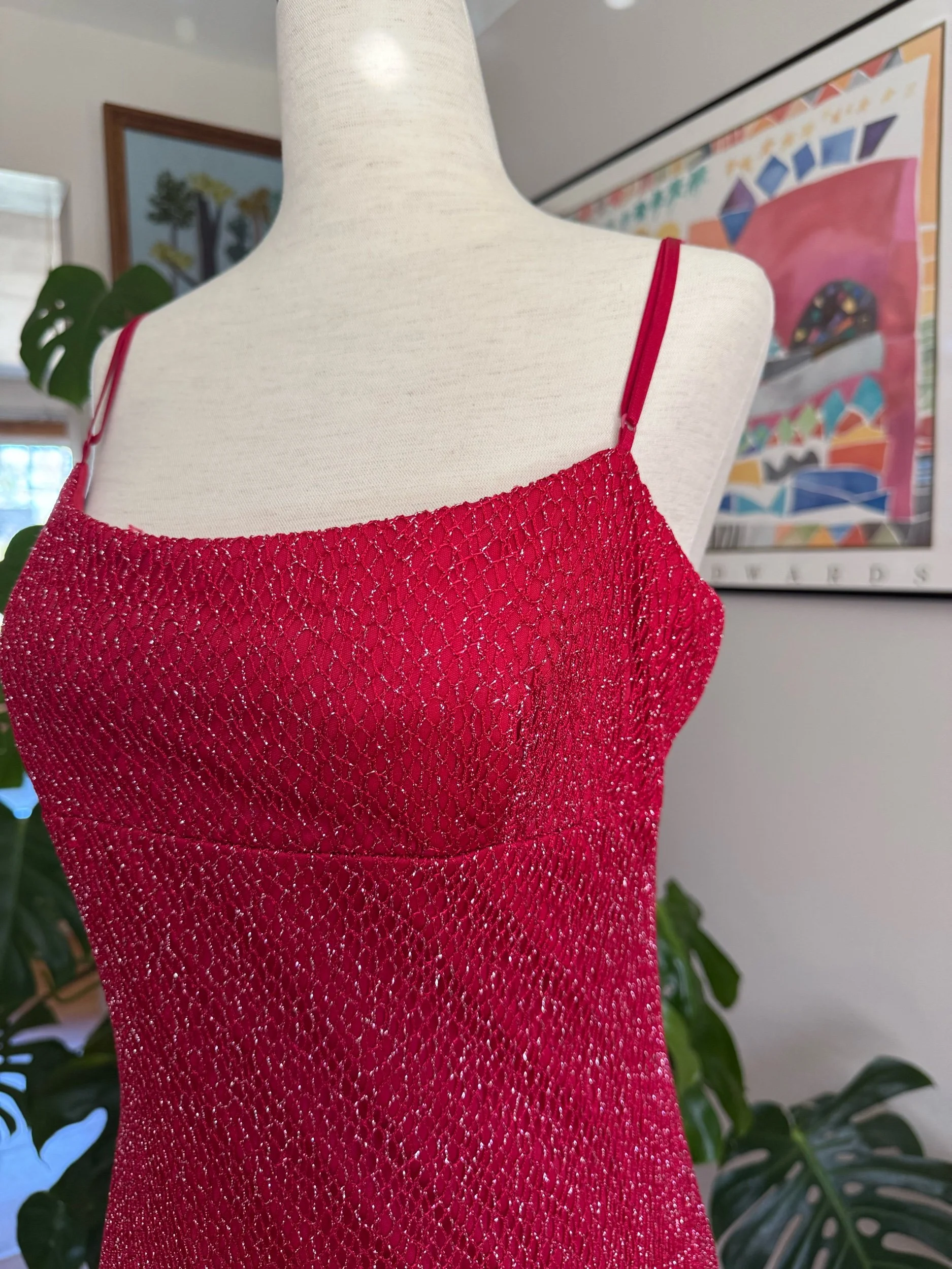 Stunning vintage new with tags sparkly red tassel mini dress / has adjustable straps :)