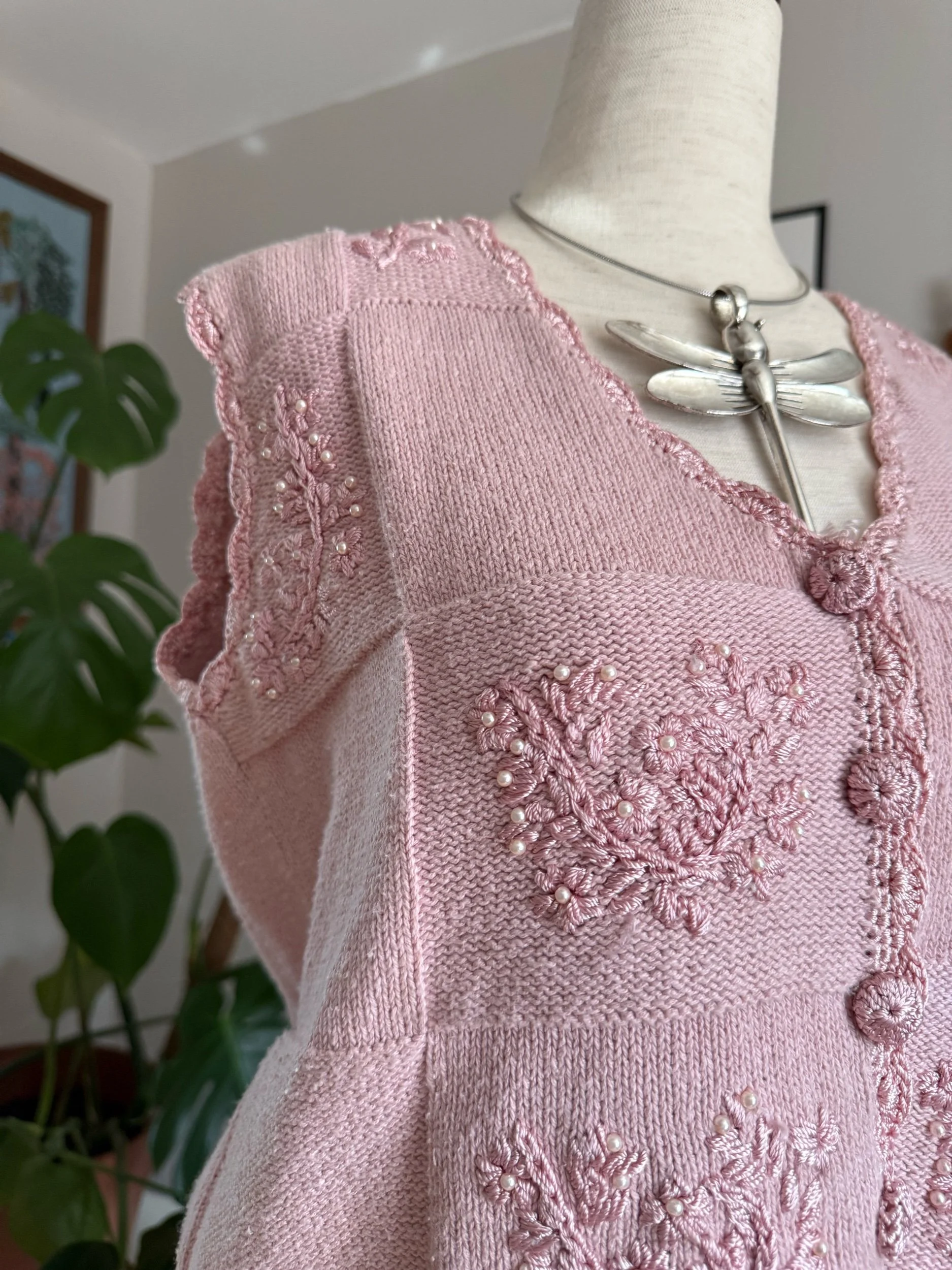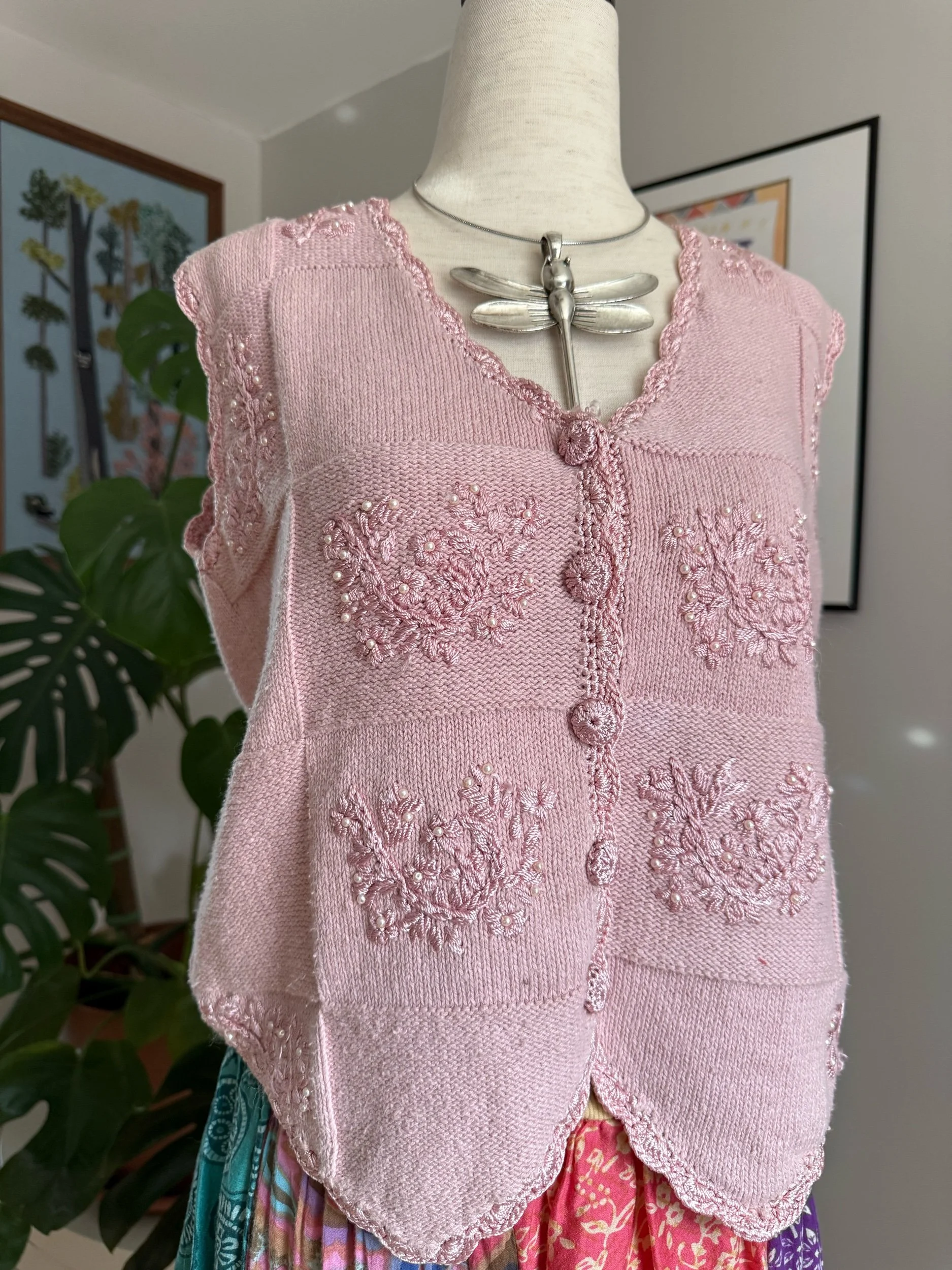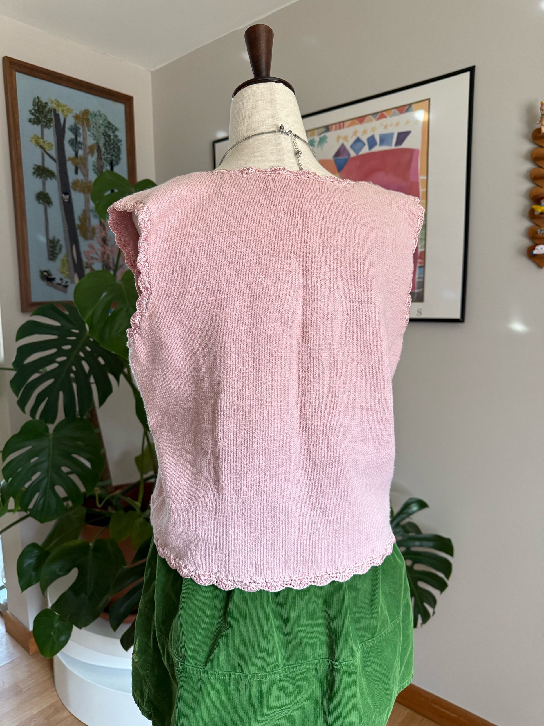 beautiful baby pink knit vest with pearl detailing :)