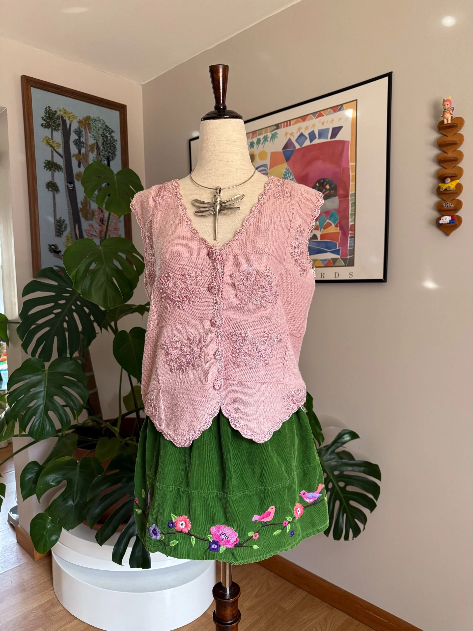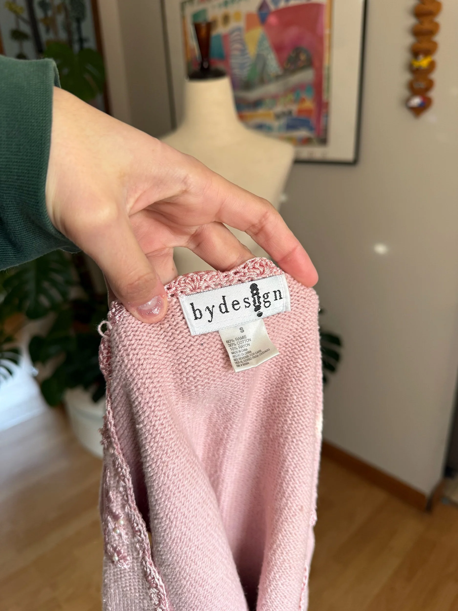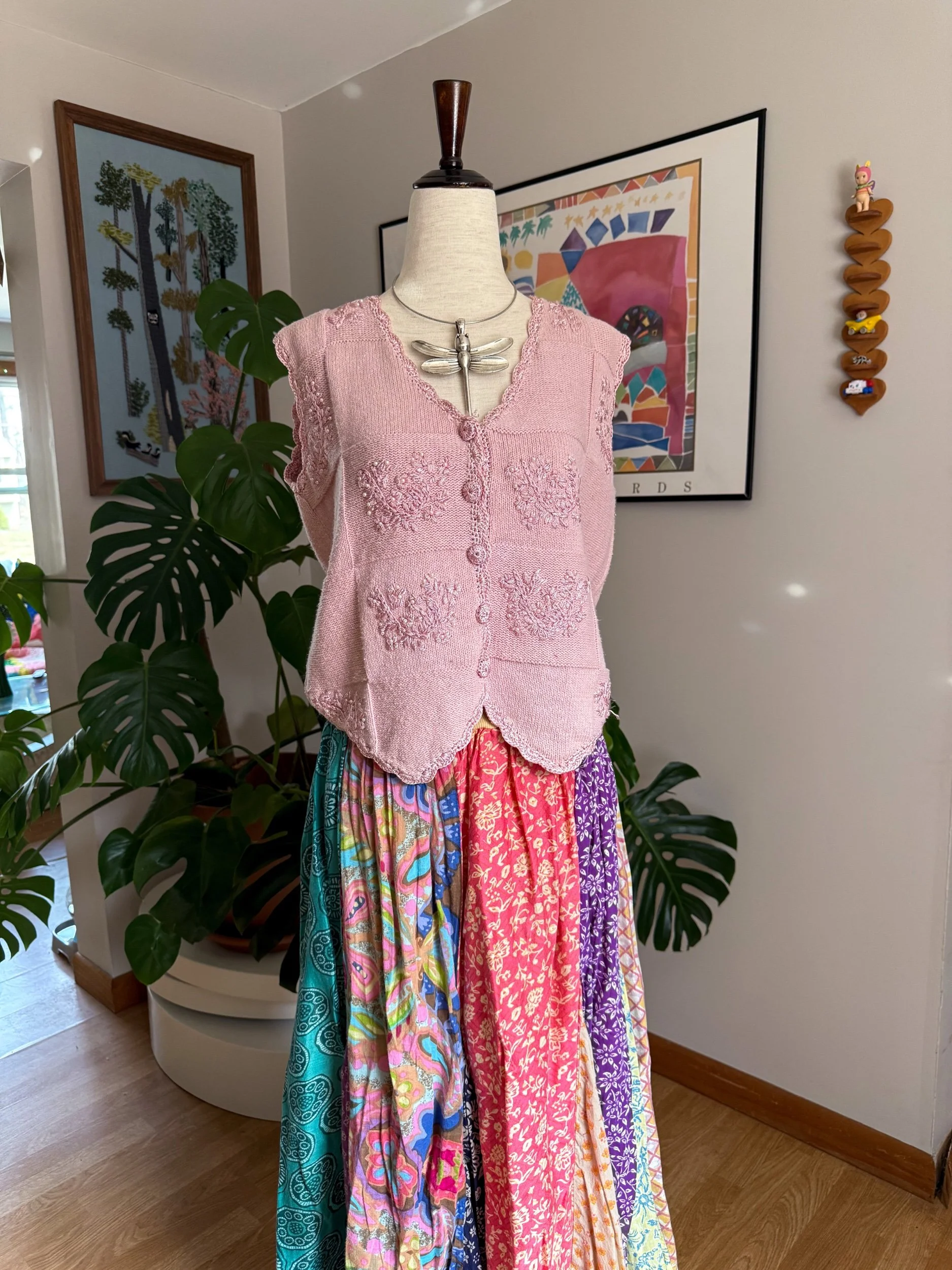 beautiful baby pink knit vest with pearl detailing :)