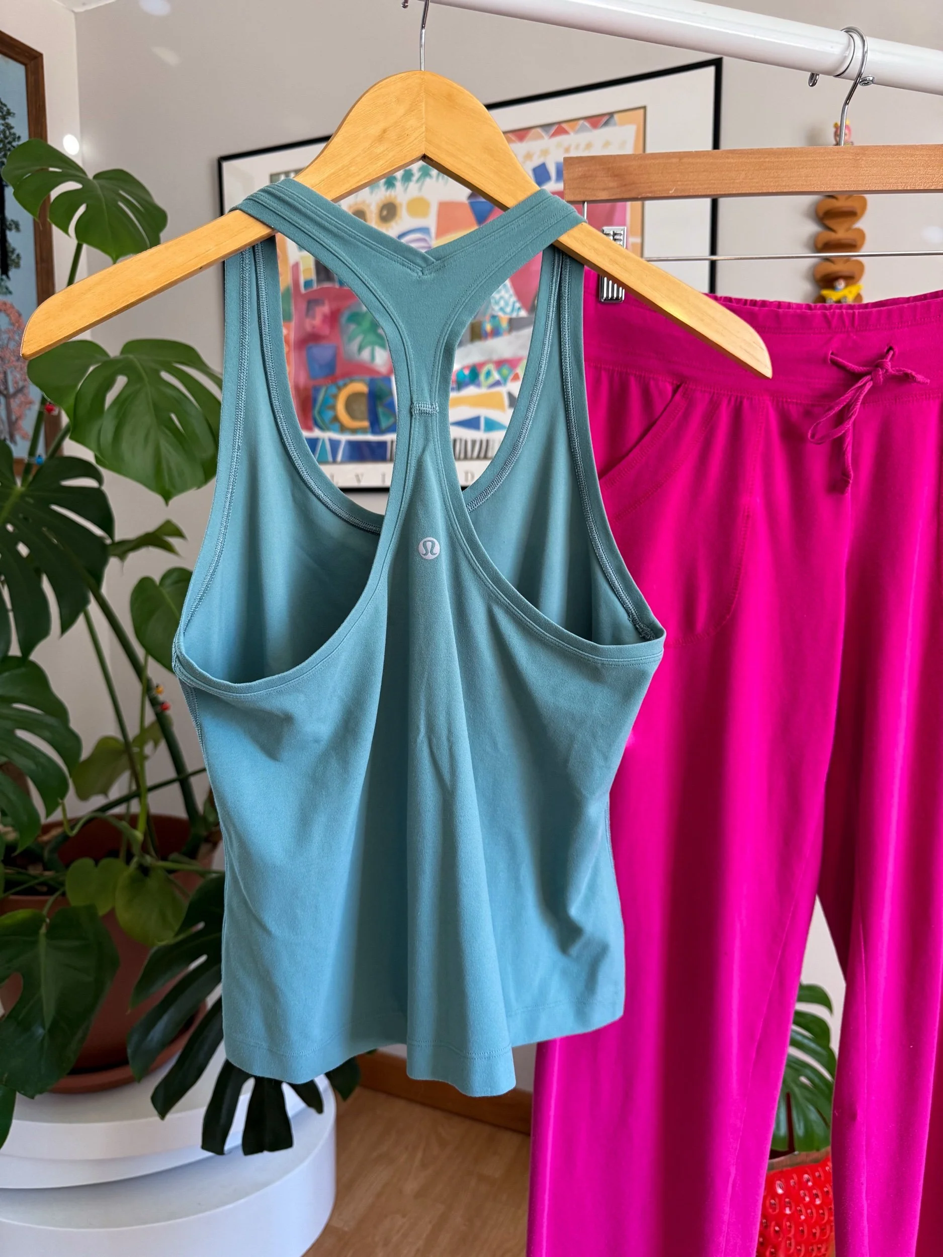 Beautiful earthy green Lululemon top, there is no size label but fits around a large or 8/10!