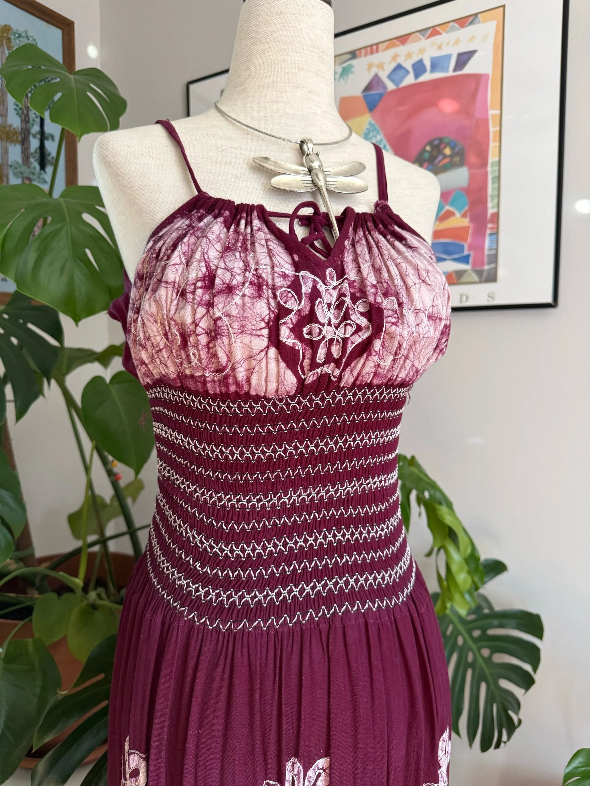 this stunning dress has the prettiest adjustable top, scrunch waist, and ruffle bottom! The top you are able to adjust by untying the strings & adjusting to your liking :)