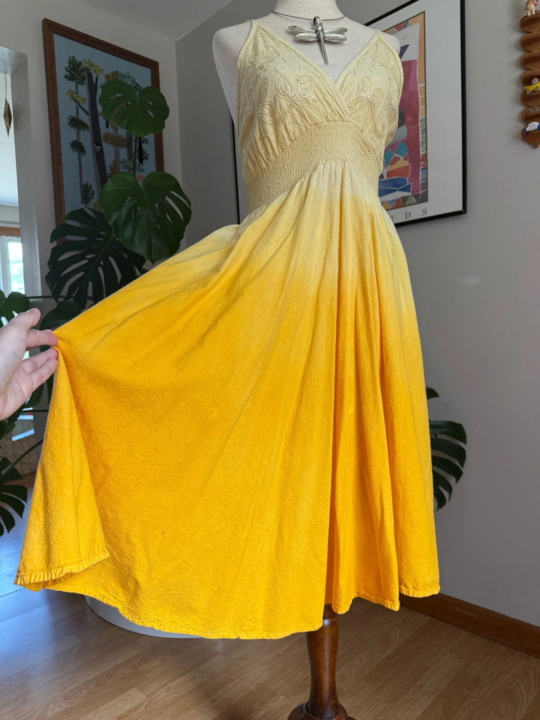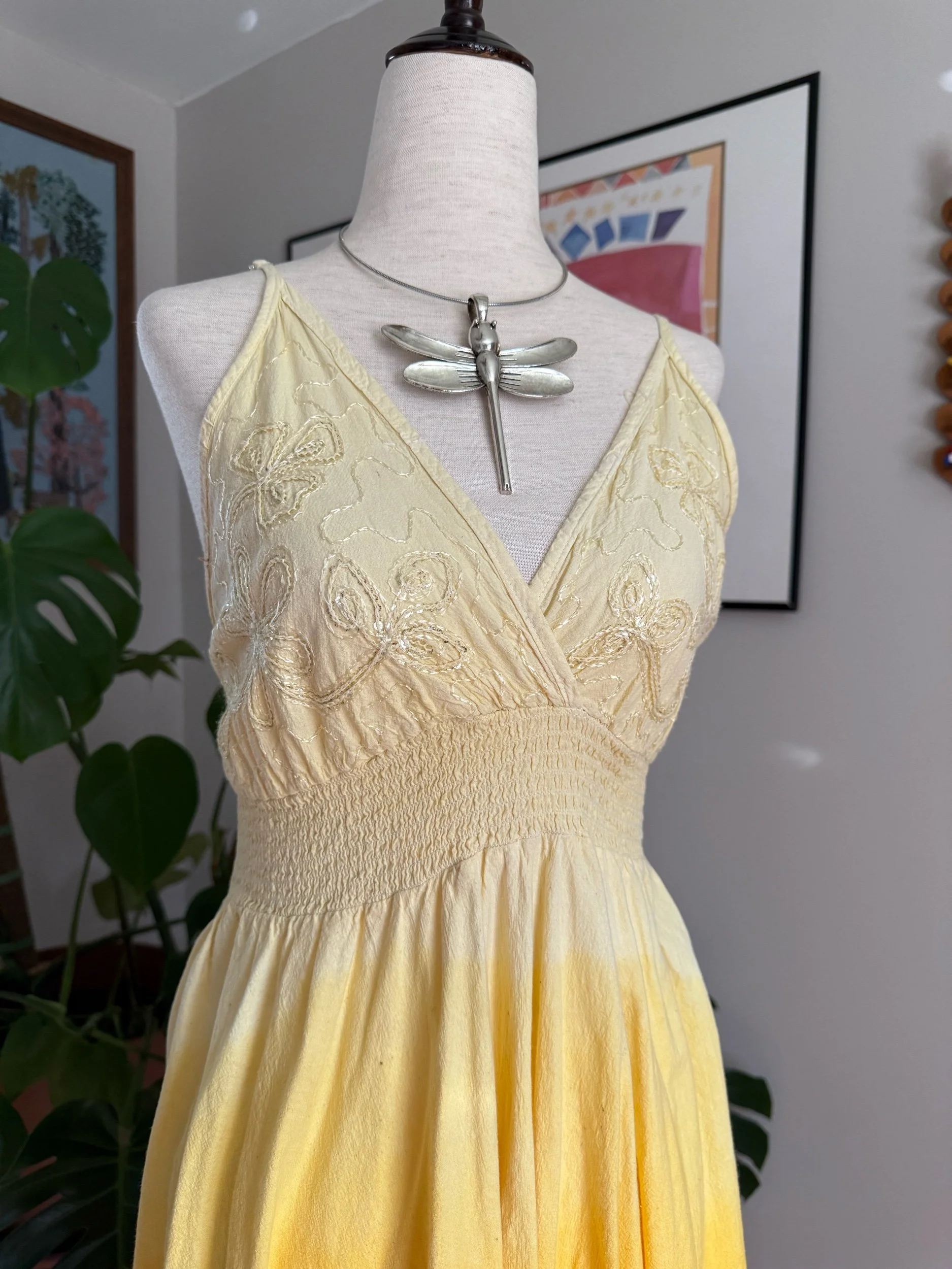 this reminds me of a sunset or sunrise in dress form! I love the embroidery on this, and the ombre color flow :) has adjustable straps!