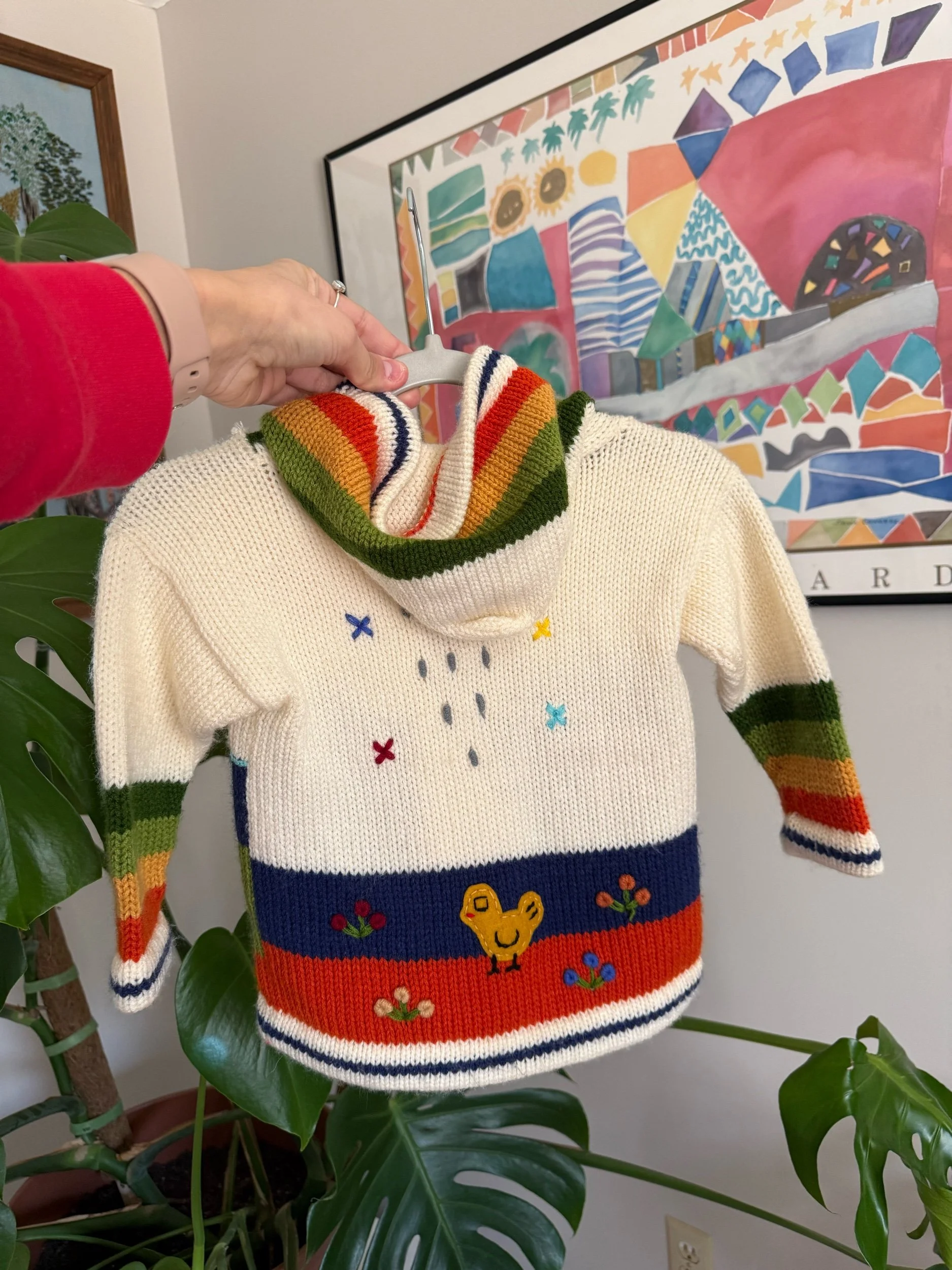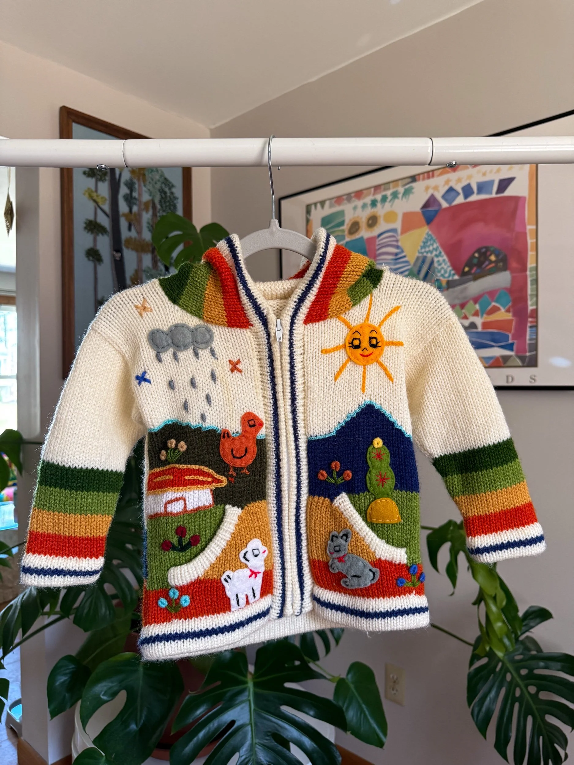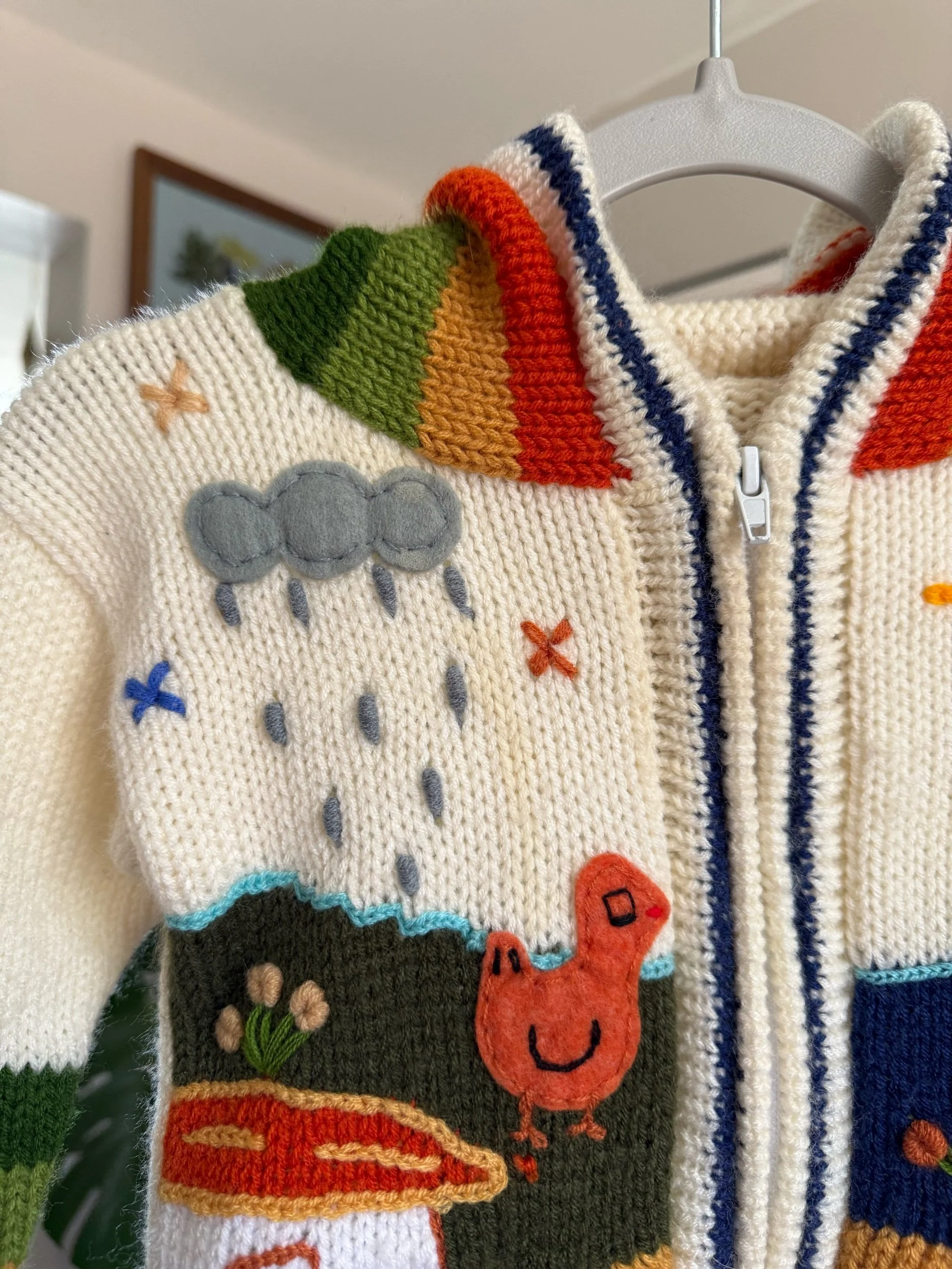 adorable zipper knit with hoodie! Design is all over :)
