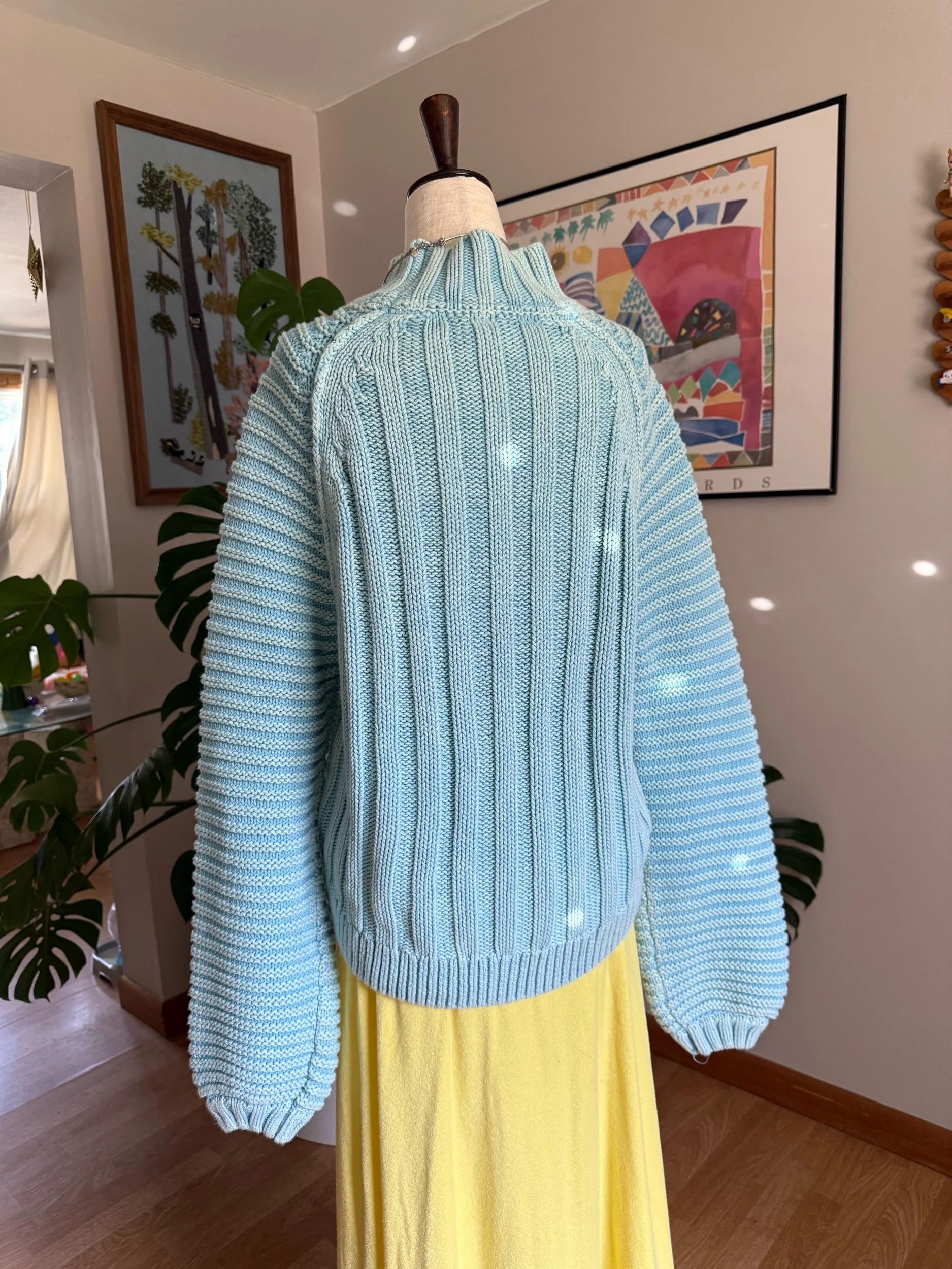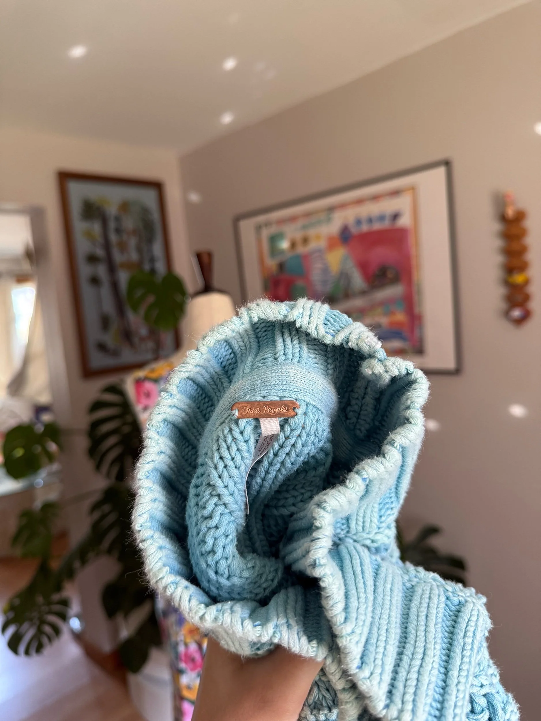 beautiful sky blue Free People sweater, with adorable balloon sleeves!