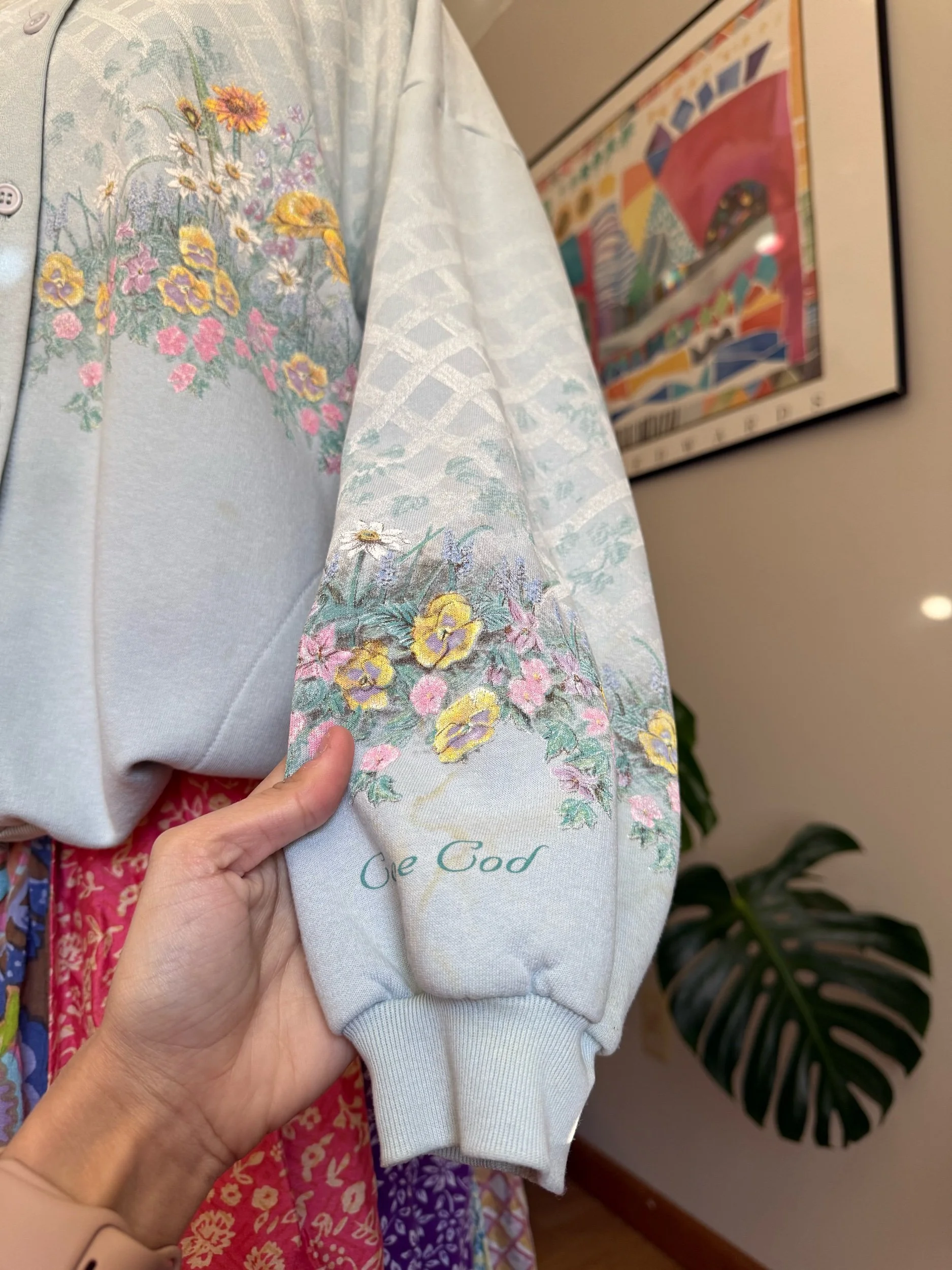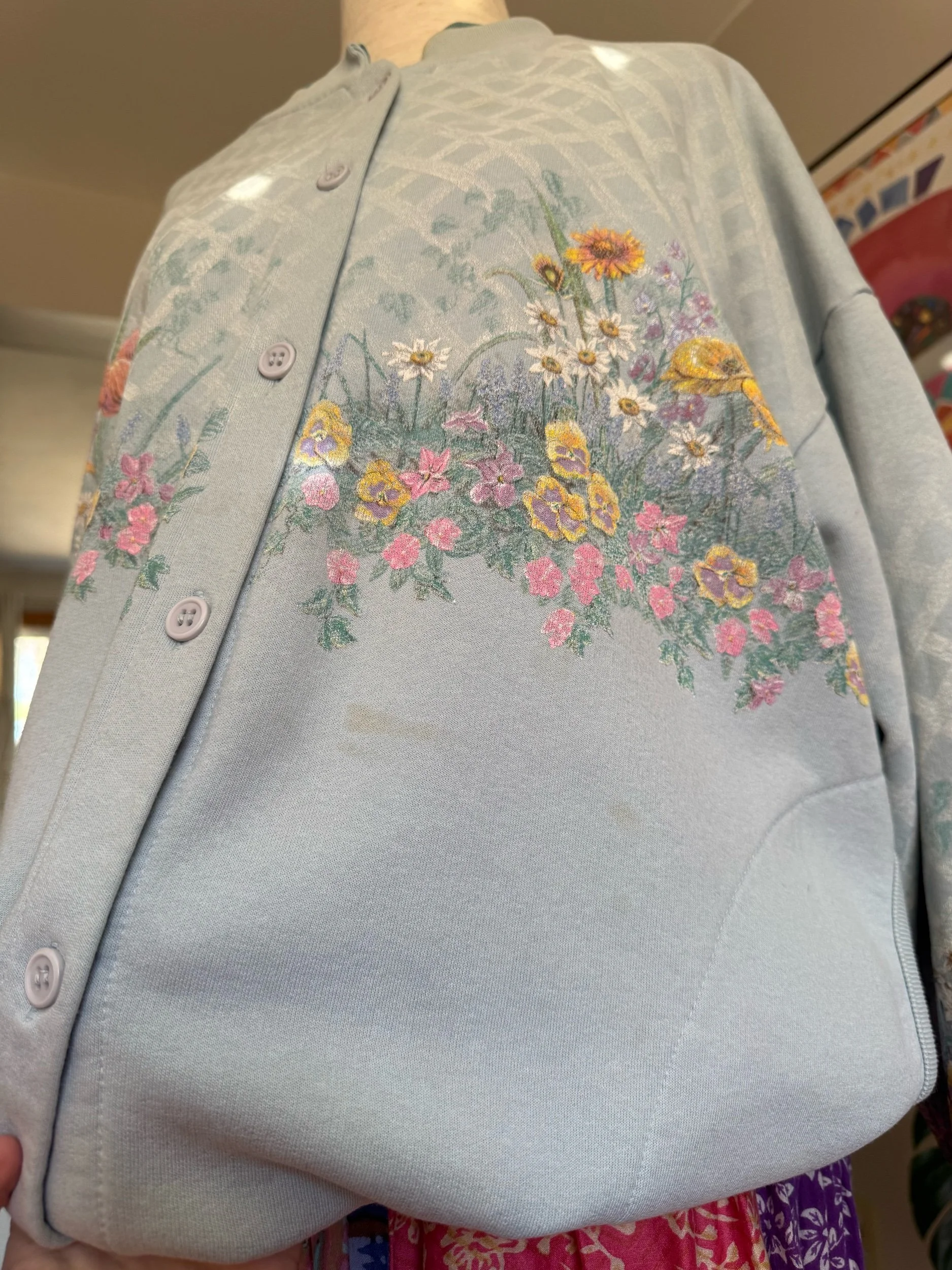 adorable soft button cardigan, with pockets & graphic that goes all around & even on the sleeves :)